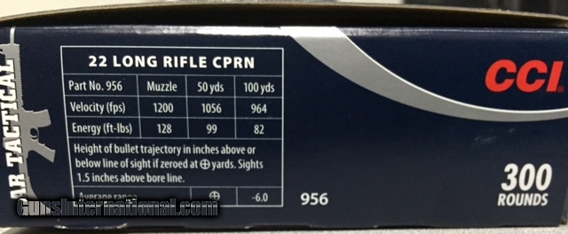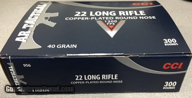 Description: CCI Ammunitiion CCI AR Tactical 22 Long Rifle 40 gr Copper Plated Round Nose Muzzle Velocity: 1200 fps 300 Round Pack CCI Product #956 3 Bricks Available SOLD |