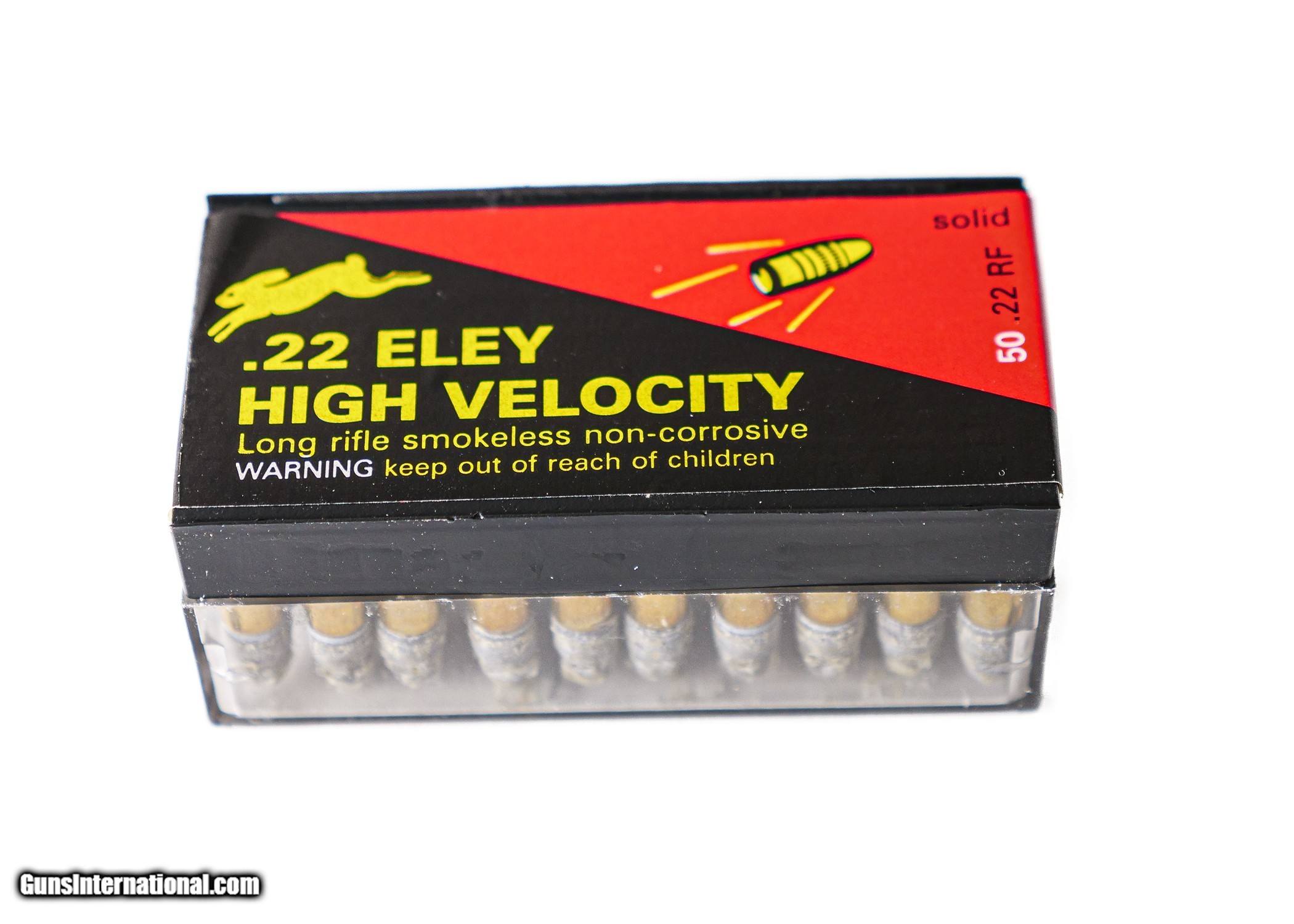 Description: A 50-pack of Eley High Velocity cartridges, long rifle smokeless, non-corrosive, .22 rimfire. SOLD |