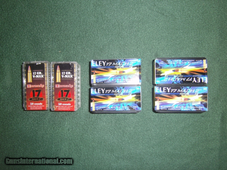 Description: hard to get 17 hm2 ammo - 6 bricks of discontinued Eley $175.00 per brick or $18.00 per box - Hornady 7 boxes all 7 $125.00 - or $18.00 per box SOLD |