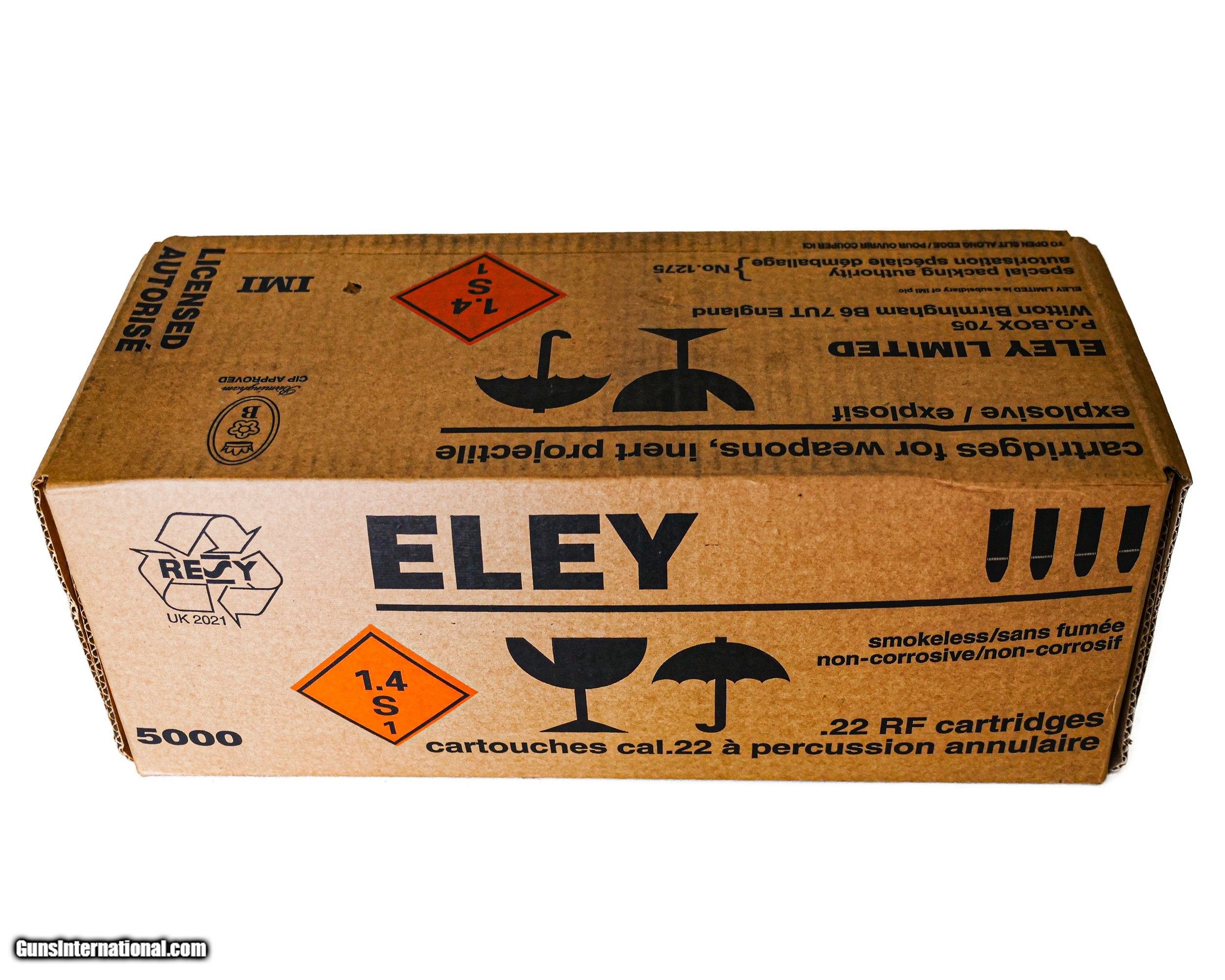 Description: A 5000-pack of Eley Scorpion cartridges, high velocity solid, long rifle, .22 rimfire. SOLD |
