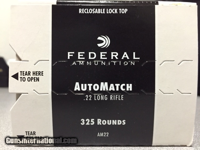Description: Federal Ammunition Federal Auto Match 22 Long Rifle 40 gr Lead Round Nose 325 Round Pack Muzzle Velocity: 1200 fps Ideal for semi-autos Federal Product #AM22 3 Bricks Available SOLD |