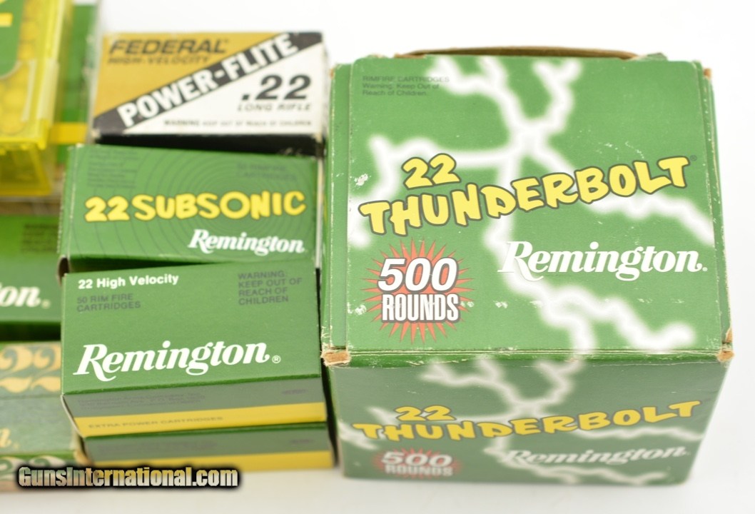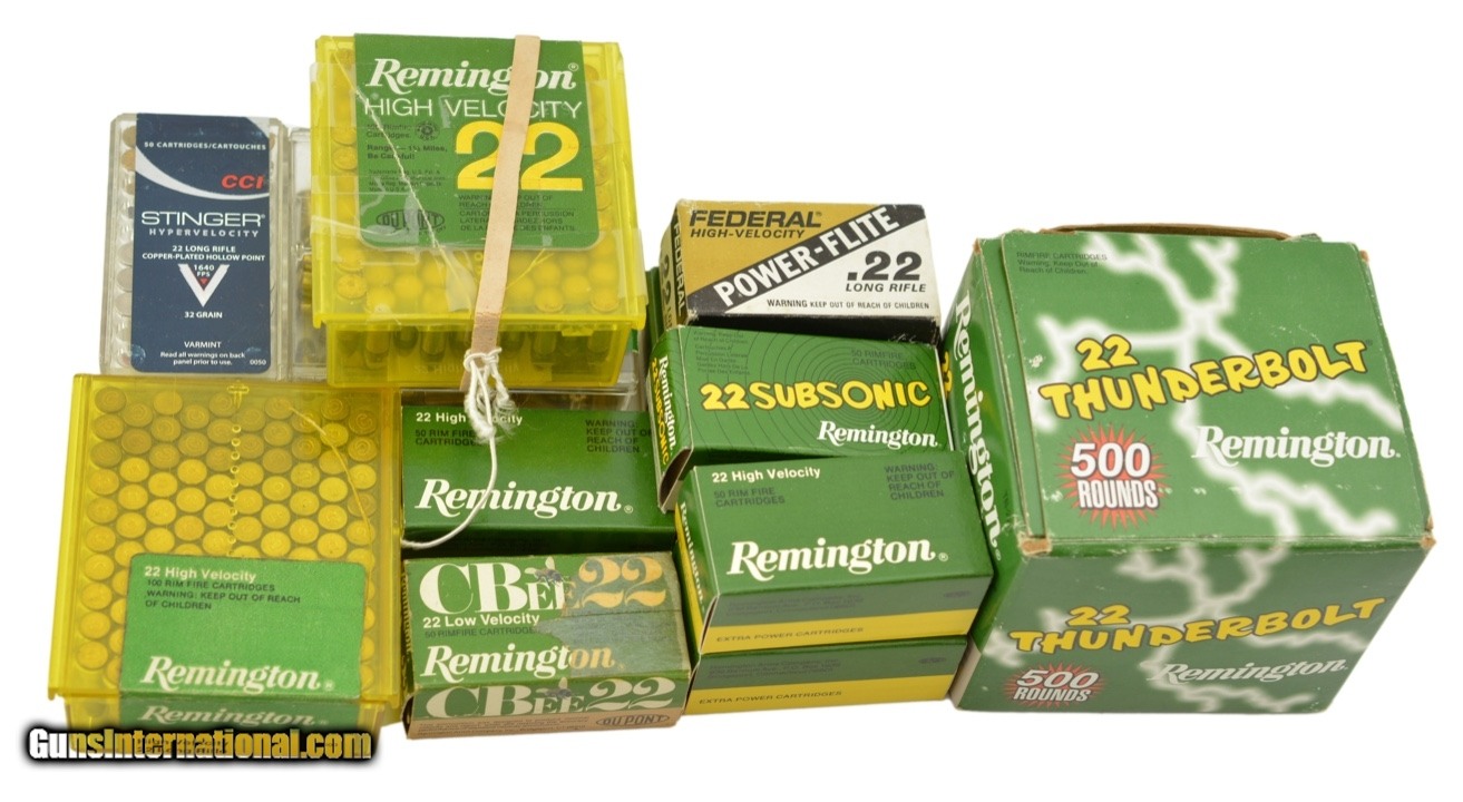 Description: This is a lot of 22LR/SHORT Ammunition consisting of multiply manufactures and bullet styles, including 500 rounds of NOS 22 LR Thunderbolt RN. No return on this lot. SOLD |