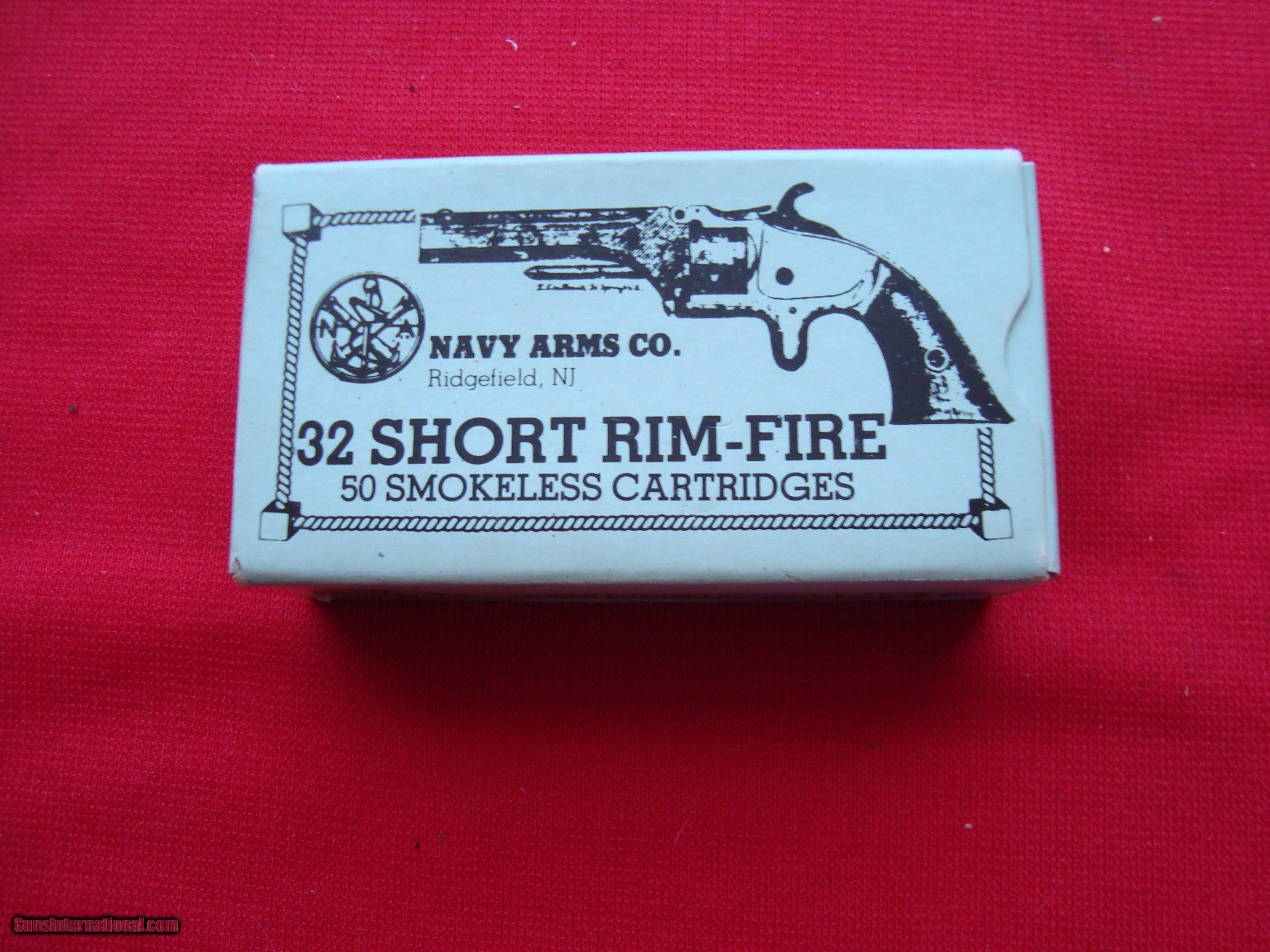 Description: One box of Navy Arms 32 rim fire short in like new condition. Shipping is $ 15.00 to the lower 48 states. Please look at all my other postings. SOLD Rifle Caliber: .32 RF Handgun Caliber: .32 Rimfire |