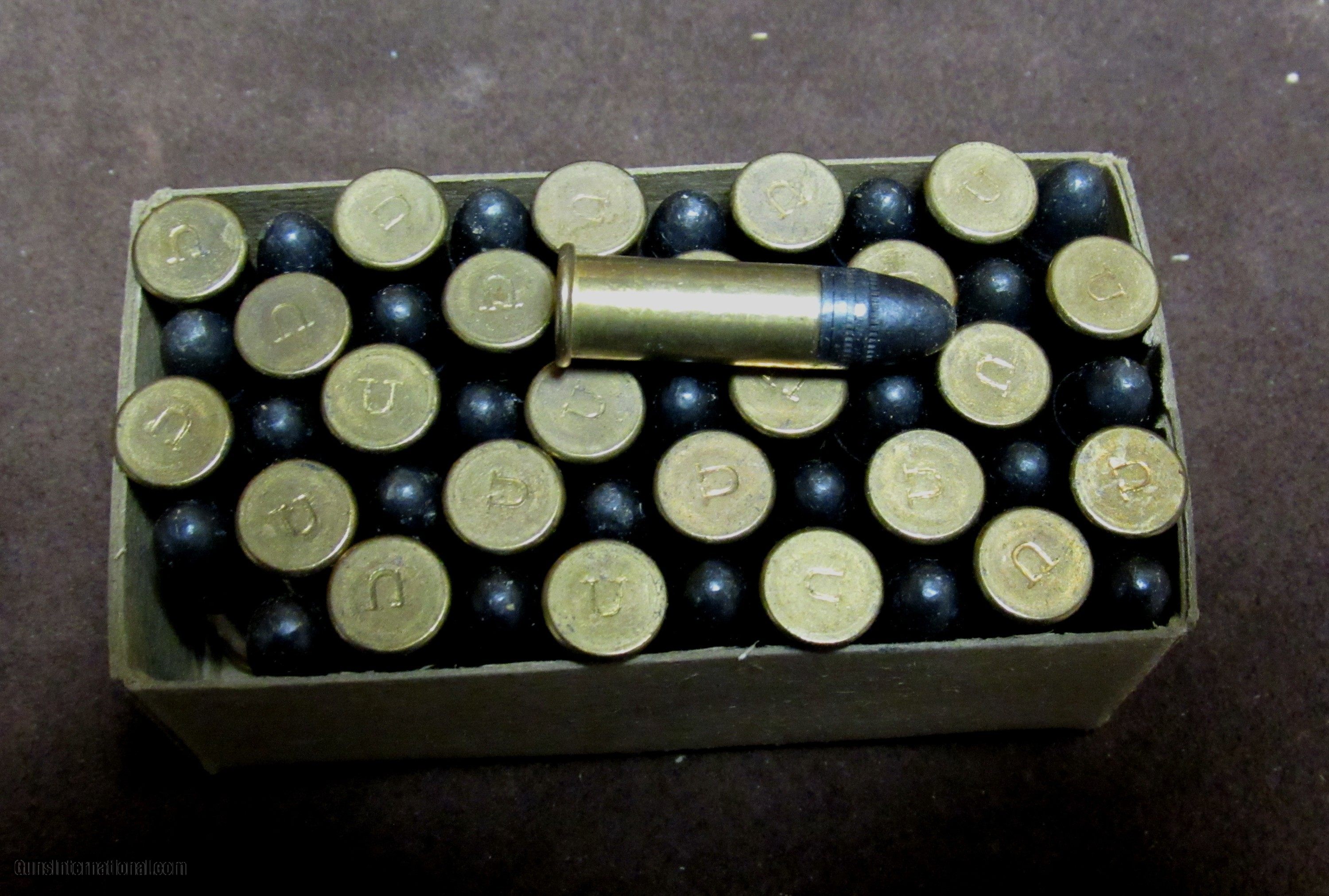 Description: SOLD. Selling an exceptionally clean and crisp box of Remington Kleanbore .32 Long Rimfire ammo containing 50 exceptionally clean cartridges. Box has been tightly plastic wrapped for many years and pictured as such. Wrapping has been removed and pictured to confirm contents of box which shows the cartridges to be correct and in exceptionally nice condition like the box. Price is $160.00 plus actual UPS Ground shipping to your address. SOLD Rifle Caliber: .32 RF Handgun Caliber: .32 Rimfire |