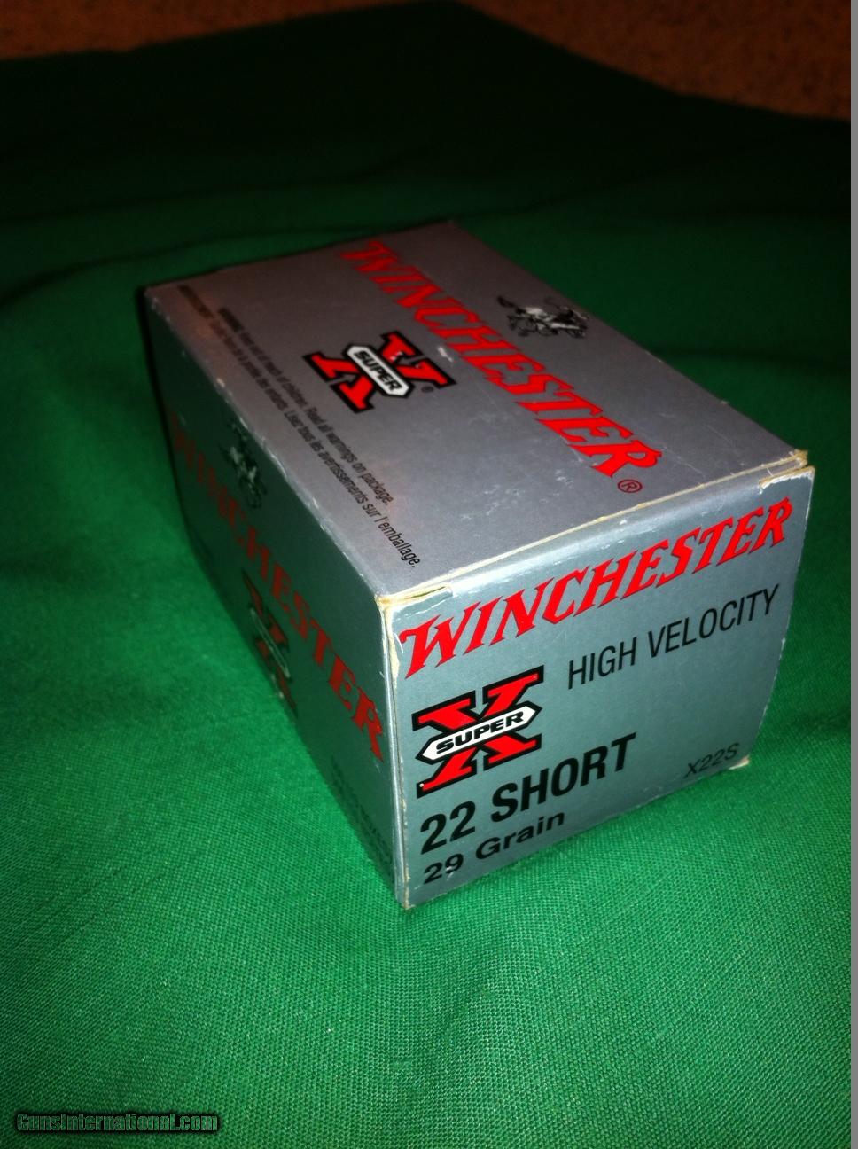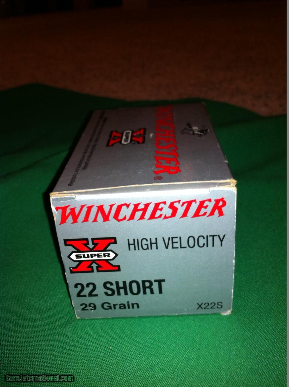 Description: Winchester high velocity 22 short, 29 grain in 10 -50 round boxes This the hard to find 22 short with an American brand that you know at an excellent price SOLD |