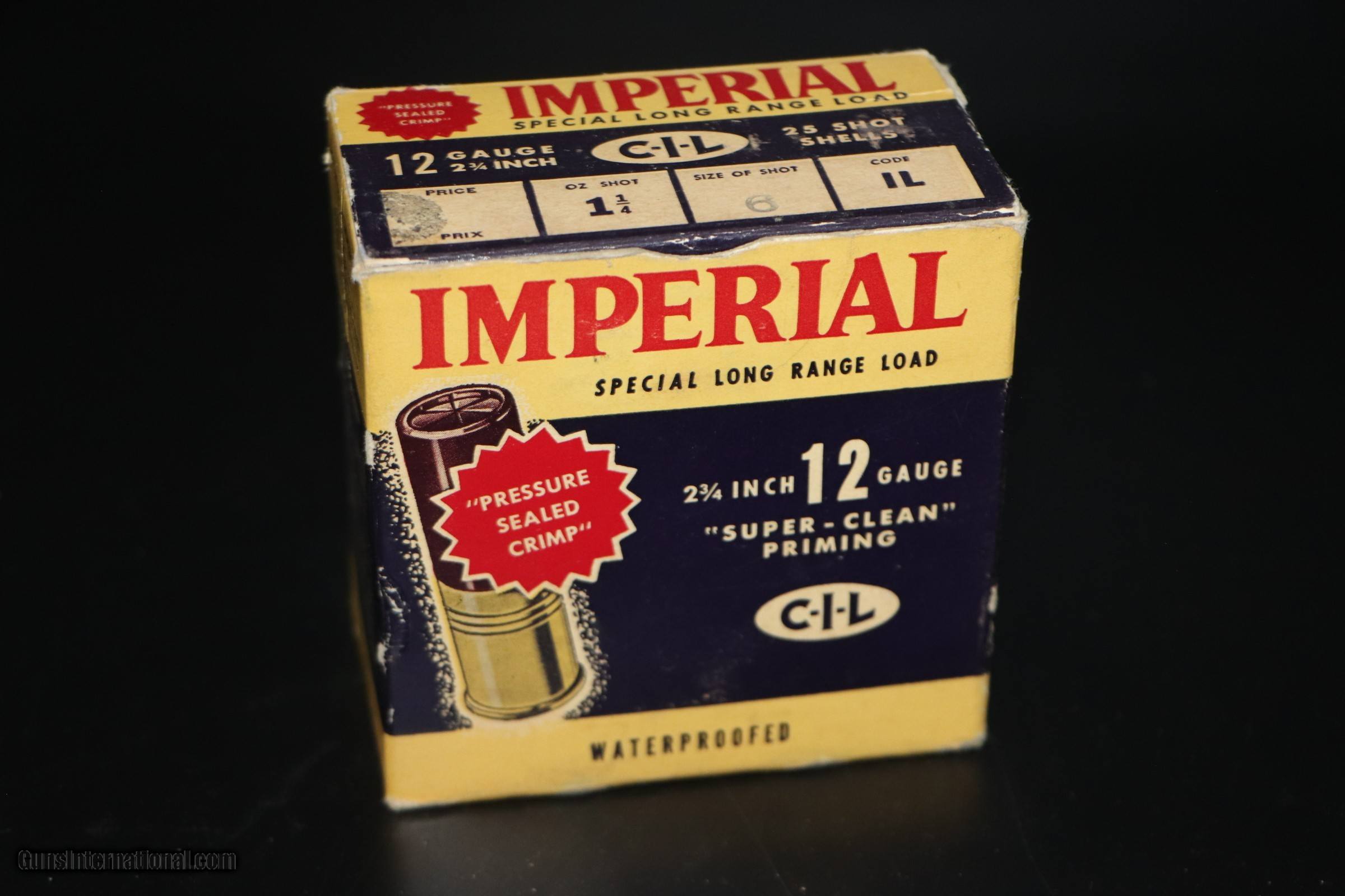 Description: Imperial 12 Ga., Shot Size 6, 1-1/4 oz., Paper Shot Shells. Ammo and box are excellent. Add $16.50 S+H SOLD Shotgun Gauge: 12 Gauge |