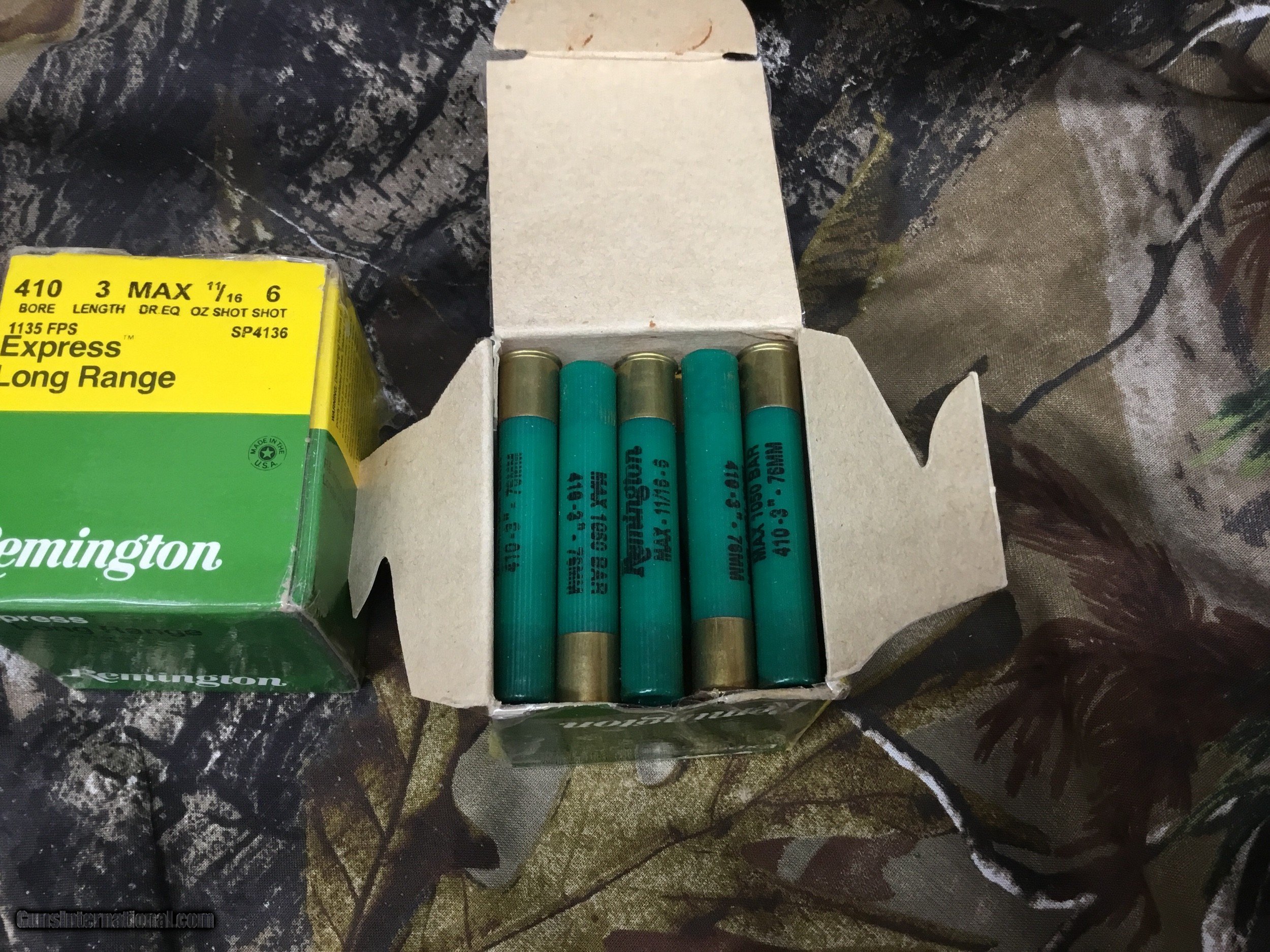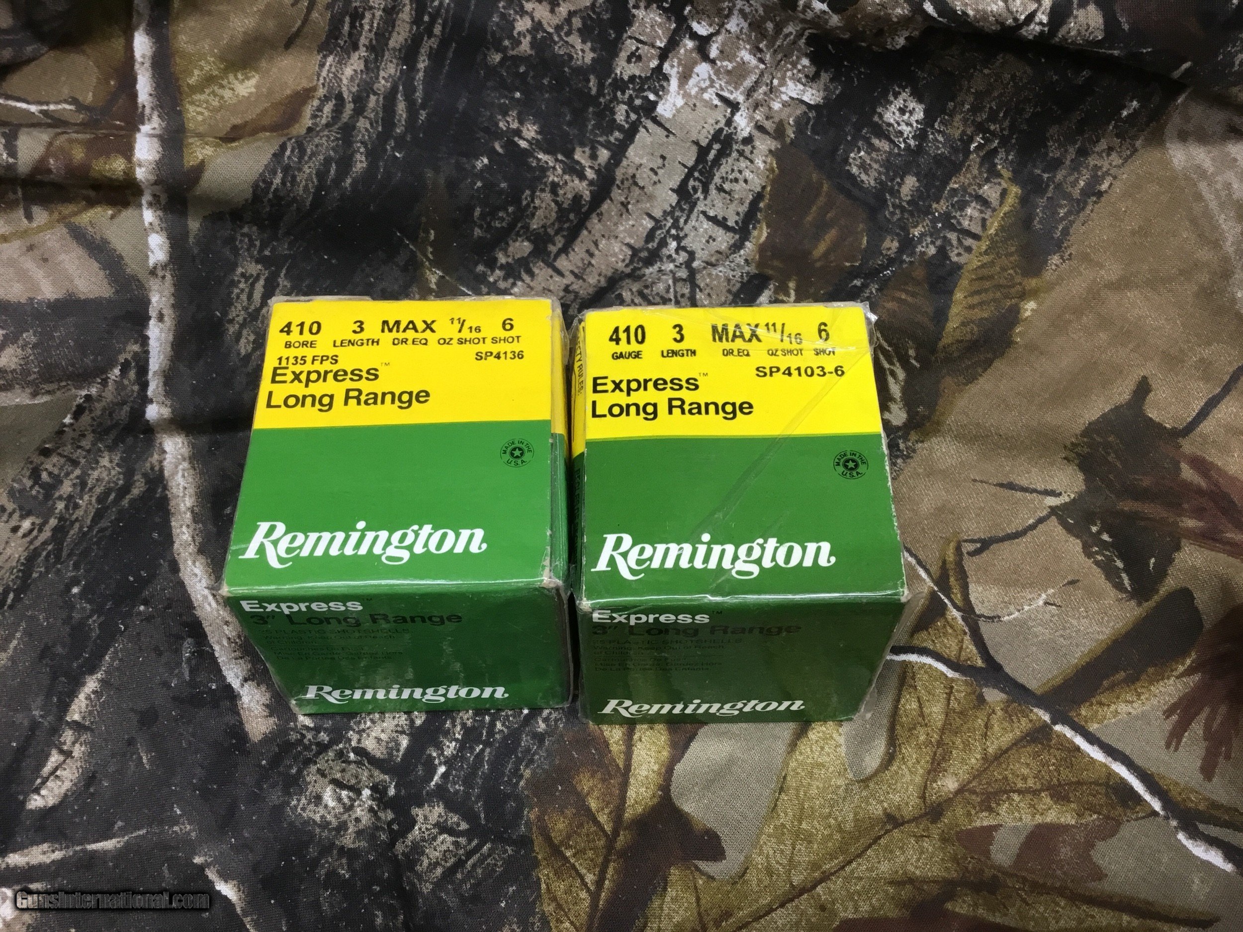 Description: Lot of Remington, Fiocchi, & Winchester .410ga 3” 11/16oz #6 shotshells 3 boxes …..75rds total -2 boxes of Remington .410 3" 11/16 oz #6 shot shells......50 rds -1 box of Fiocchi .410 3" 11/16oz #6 shells......25rds $109.00 $21.00 to ship Thank you for looking at our items. If it is listed on the site, we still have it in the shop. If you wish to buy, hit buy it now and call the shop to pay. Ask for Bree....... (803) 874-1060. If you are WEST of the Mississippi add $10 more to shipping cost. NO sales to California EXCEPT under certain conditions. If you are in California, please DO NOT push buy it now and just CALL the shop first. ...... (803) 874-1060 NO INTERNATIONAL SALES. SOLD Shotgun Gauge: .410 Gauge |