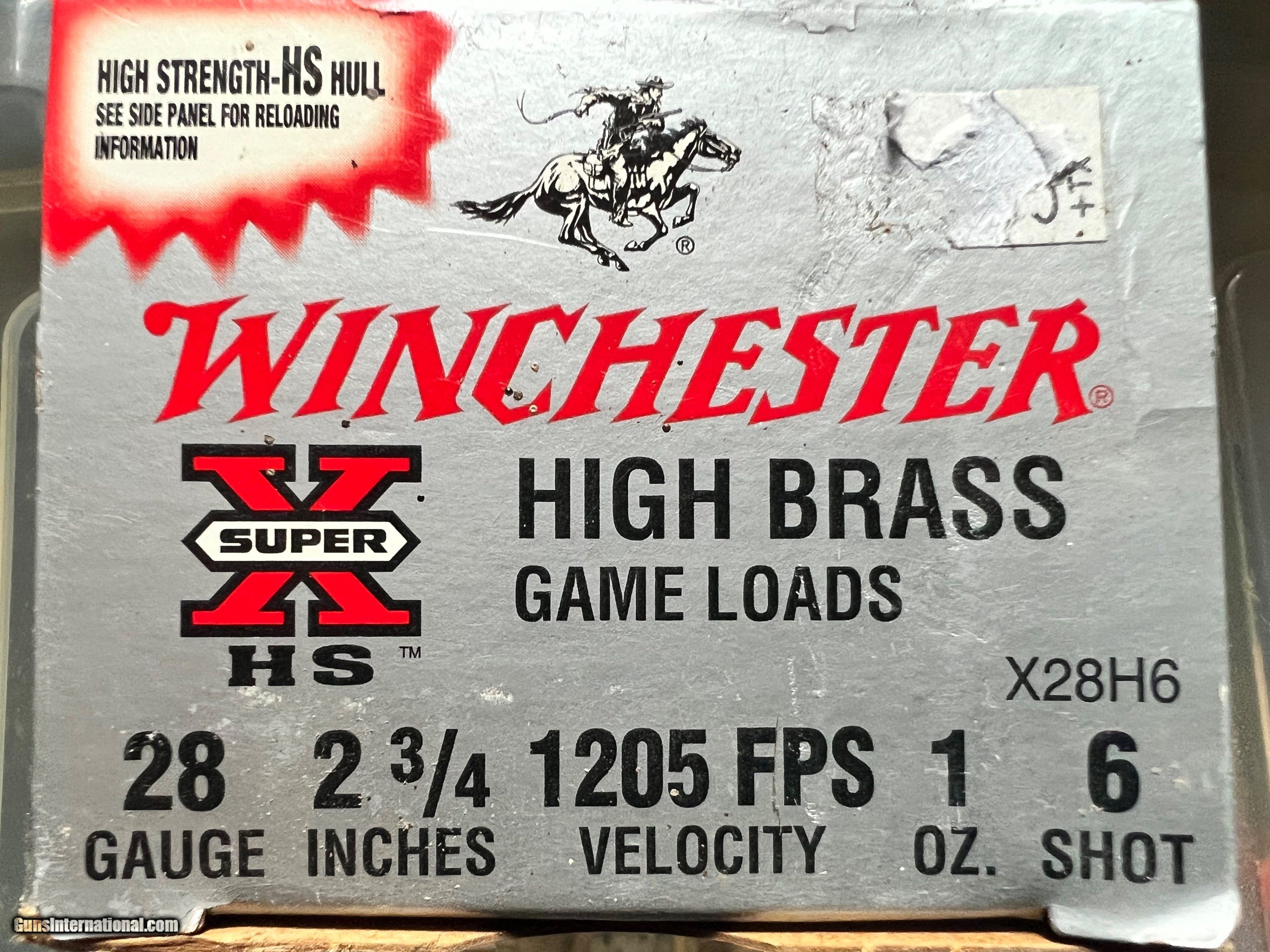 Description: Nine boxes (225 rounds) Winchester super x 28ga high brass game loads 1oz #6 shot 1205 FPS shipping included SOLD Shotgun Gauge: 28 Gauge |