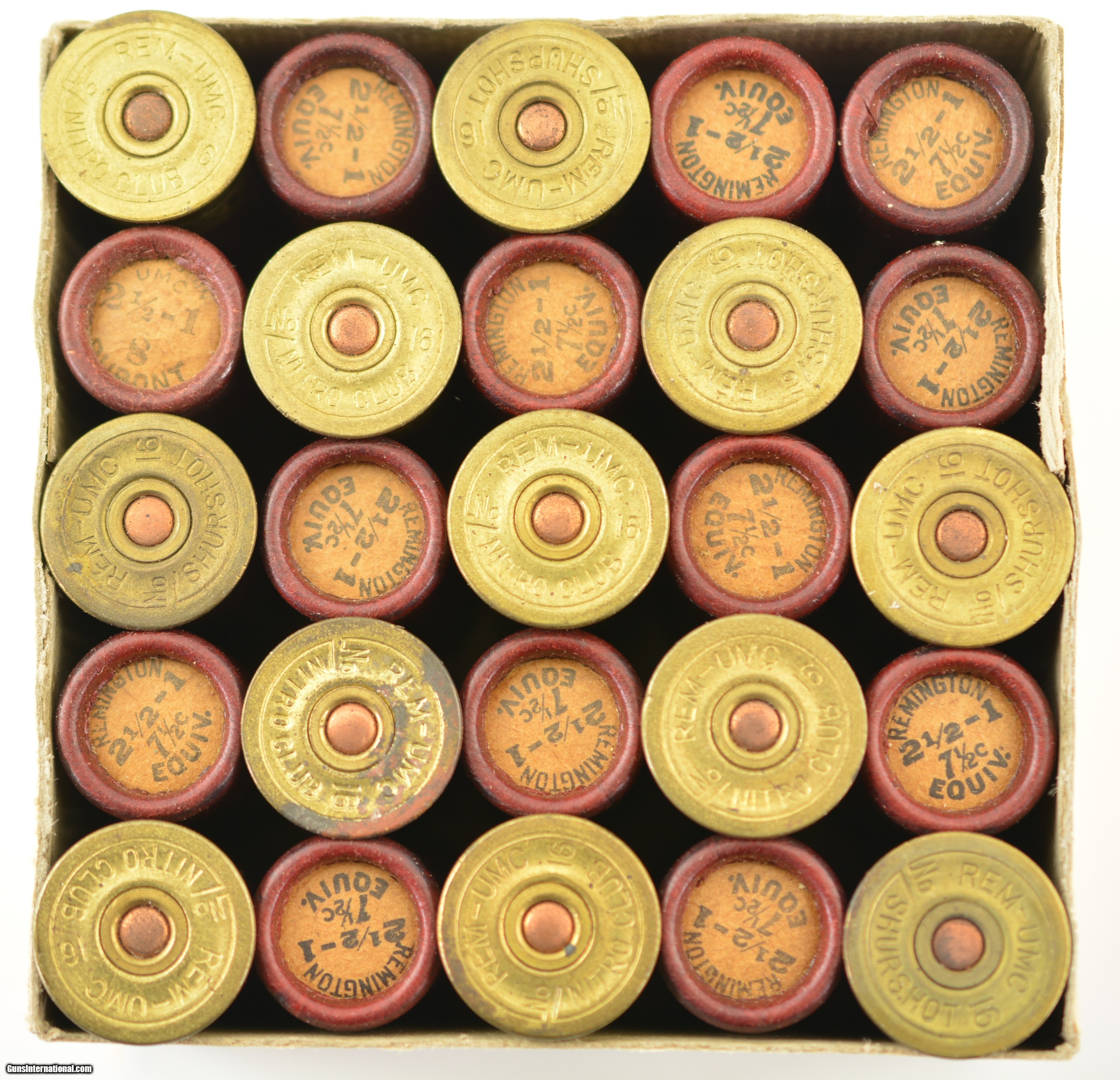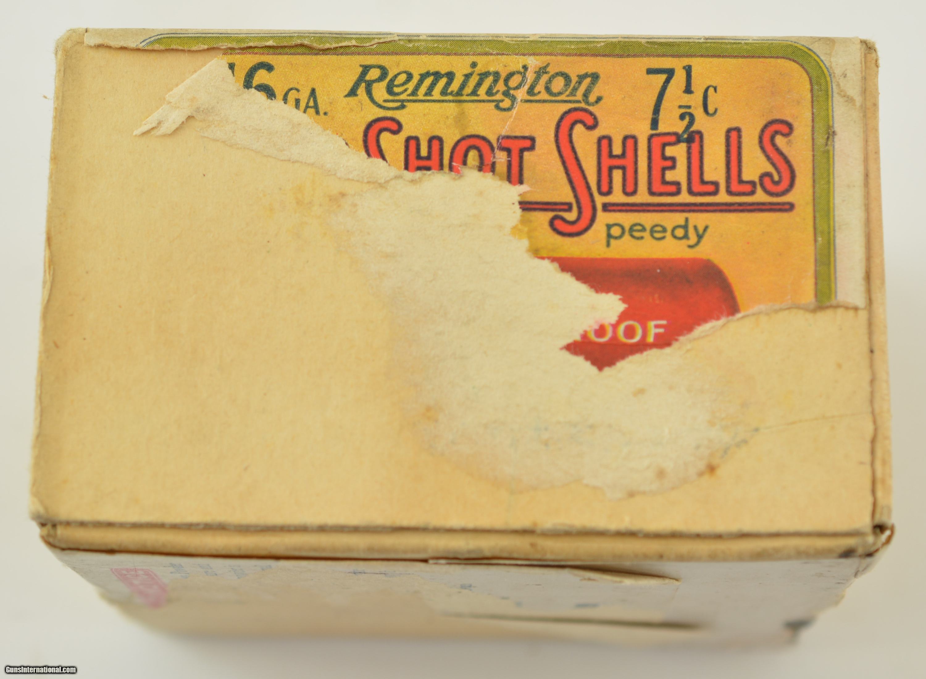 Description: Remington SHUR Shot Shells, 16 ga 2 piece full box all in excellent condition, red cases. Nice top label, front face label torn. SOLD Manufacturer: Remington Model: Ammo Caliber Info: 16ga Gauge Info: 16ga |