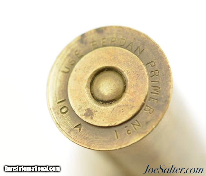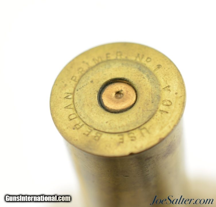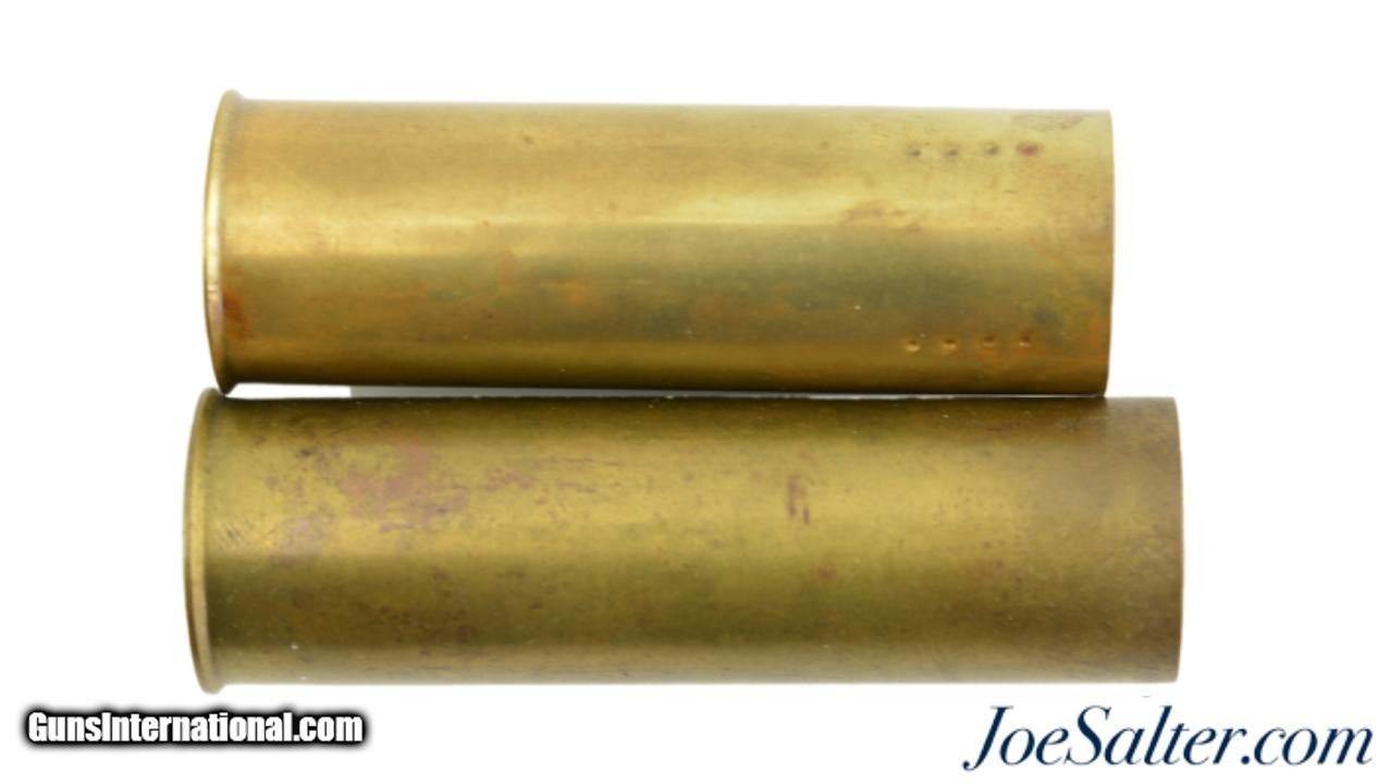 Description: This is a lot of two brass 10 Gauge shotgun shells marked for Berdan primers. One shell measures 2 ½" OAL and the other 2 3/4" with both marked "Use Berdan Primer No. 1" with one live primed and the other shot. SOLD |