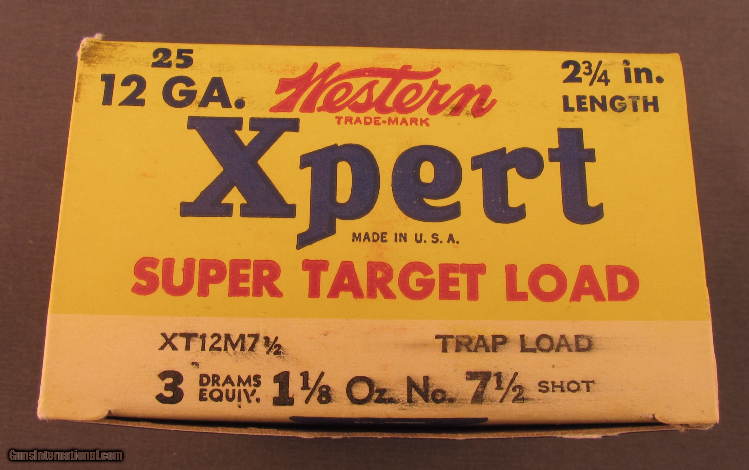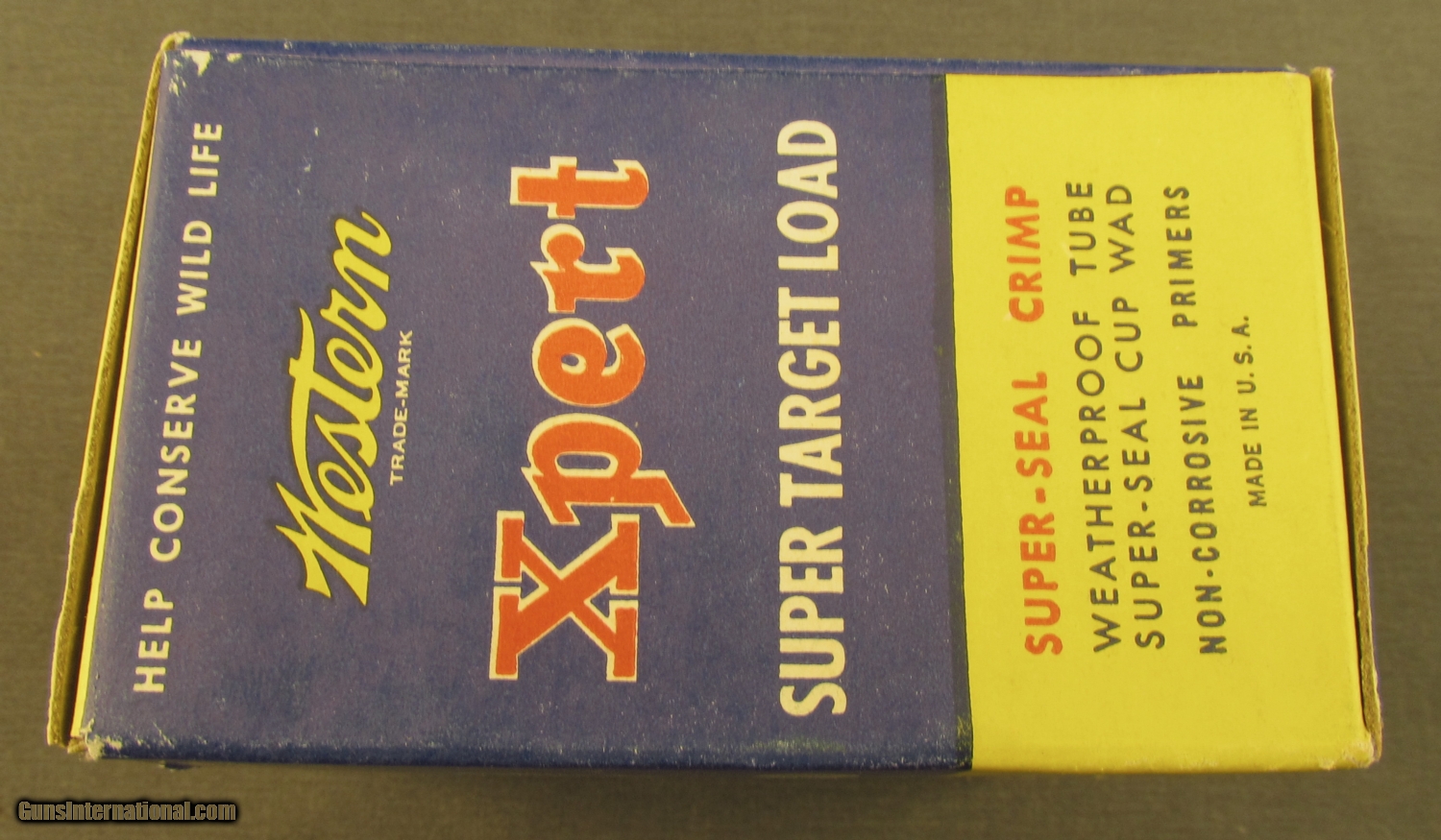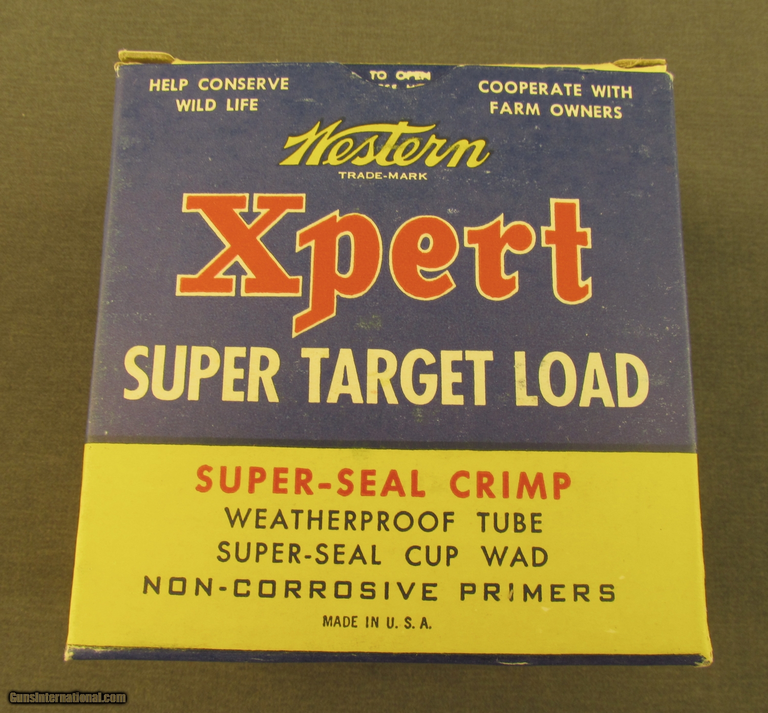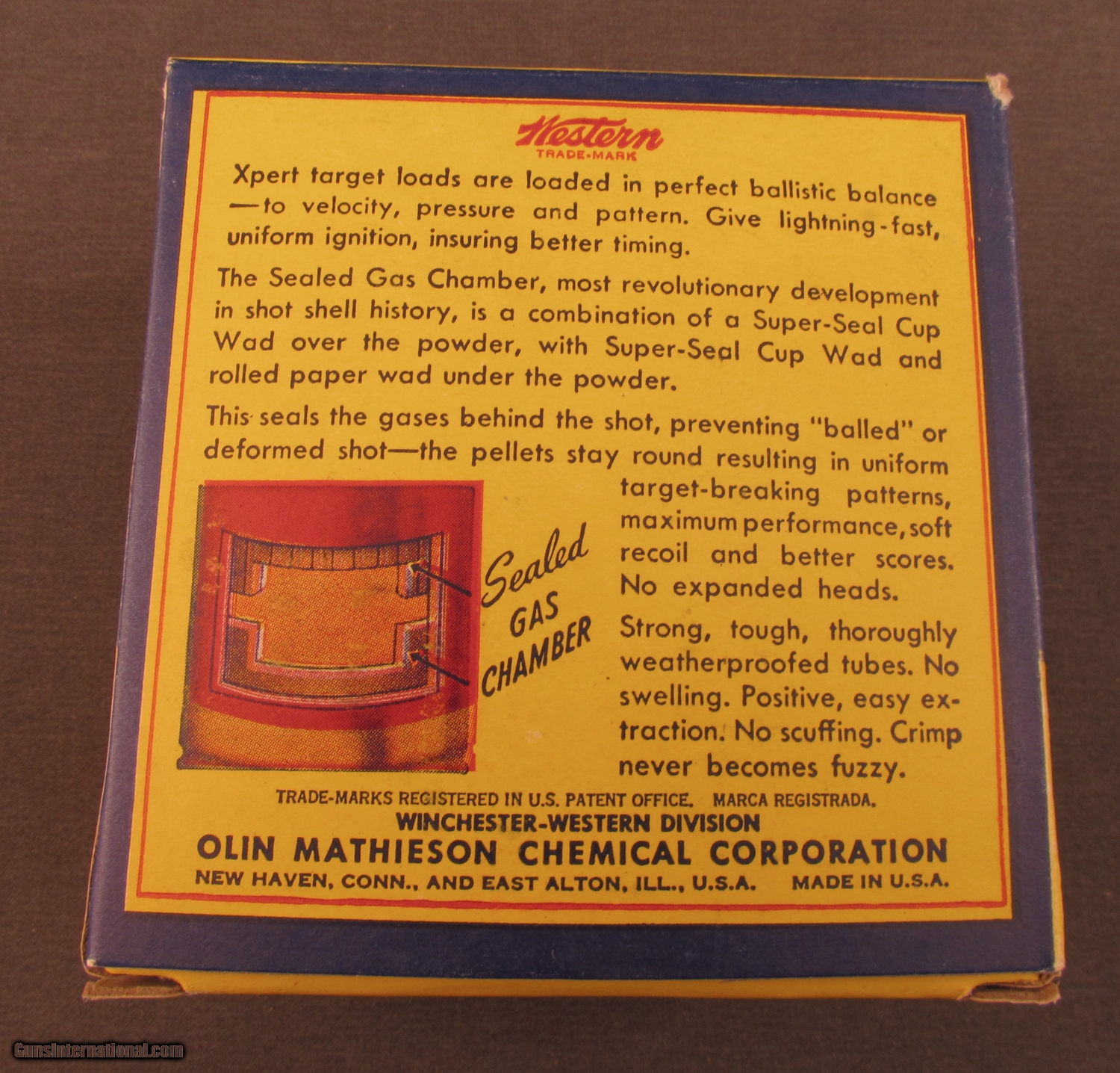 Description: One full 25 round box in excellent condition with bright colors and crisp corners. This box was made in the early 1950's and it contains paper shells and a nice warning insert advising against reloading the shells. SOLD Manufacturer: Western Model: Ammo Caliber Info: 12ga Gauge Info: 12ga |