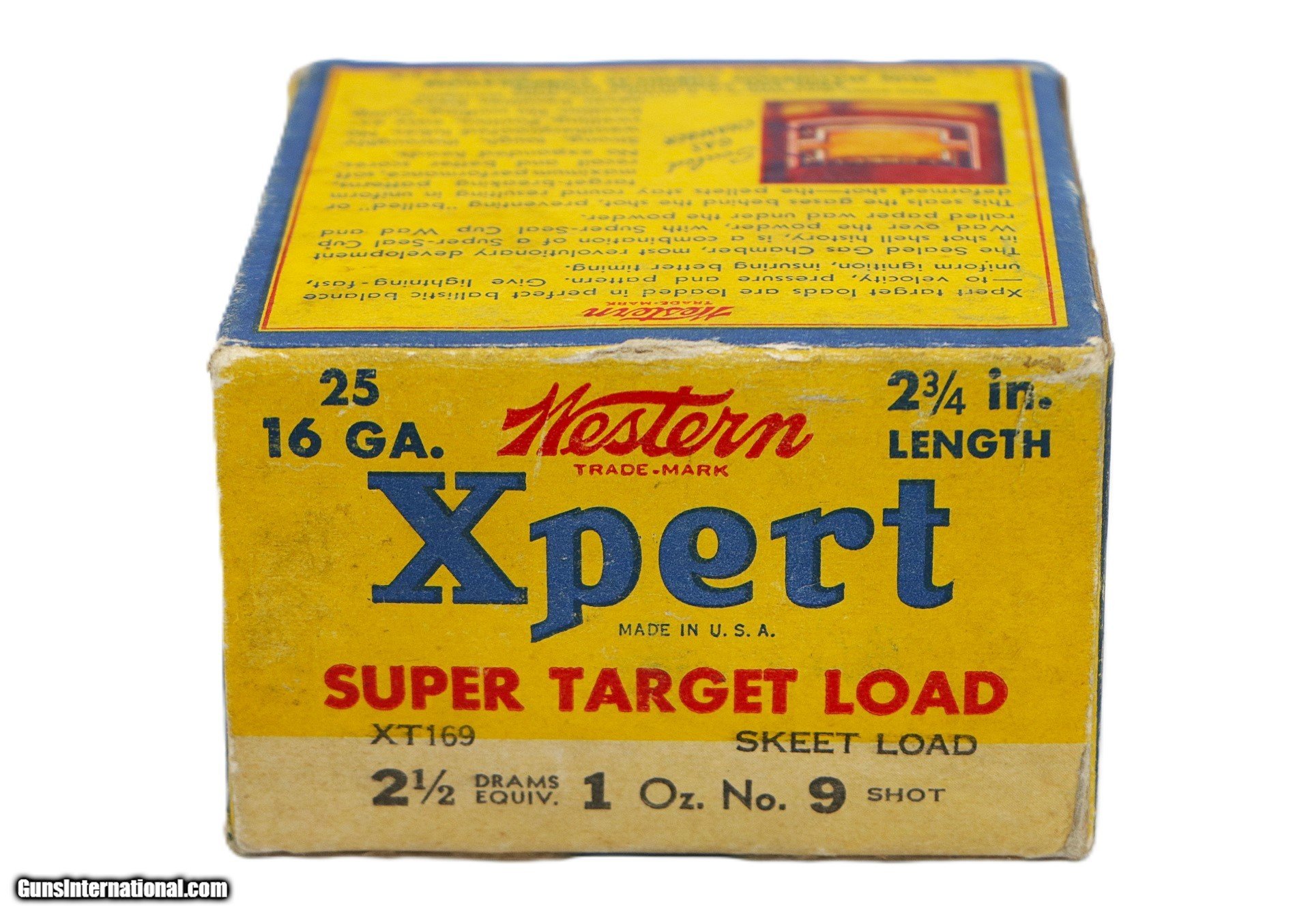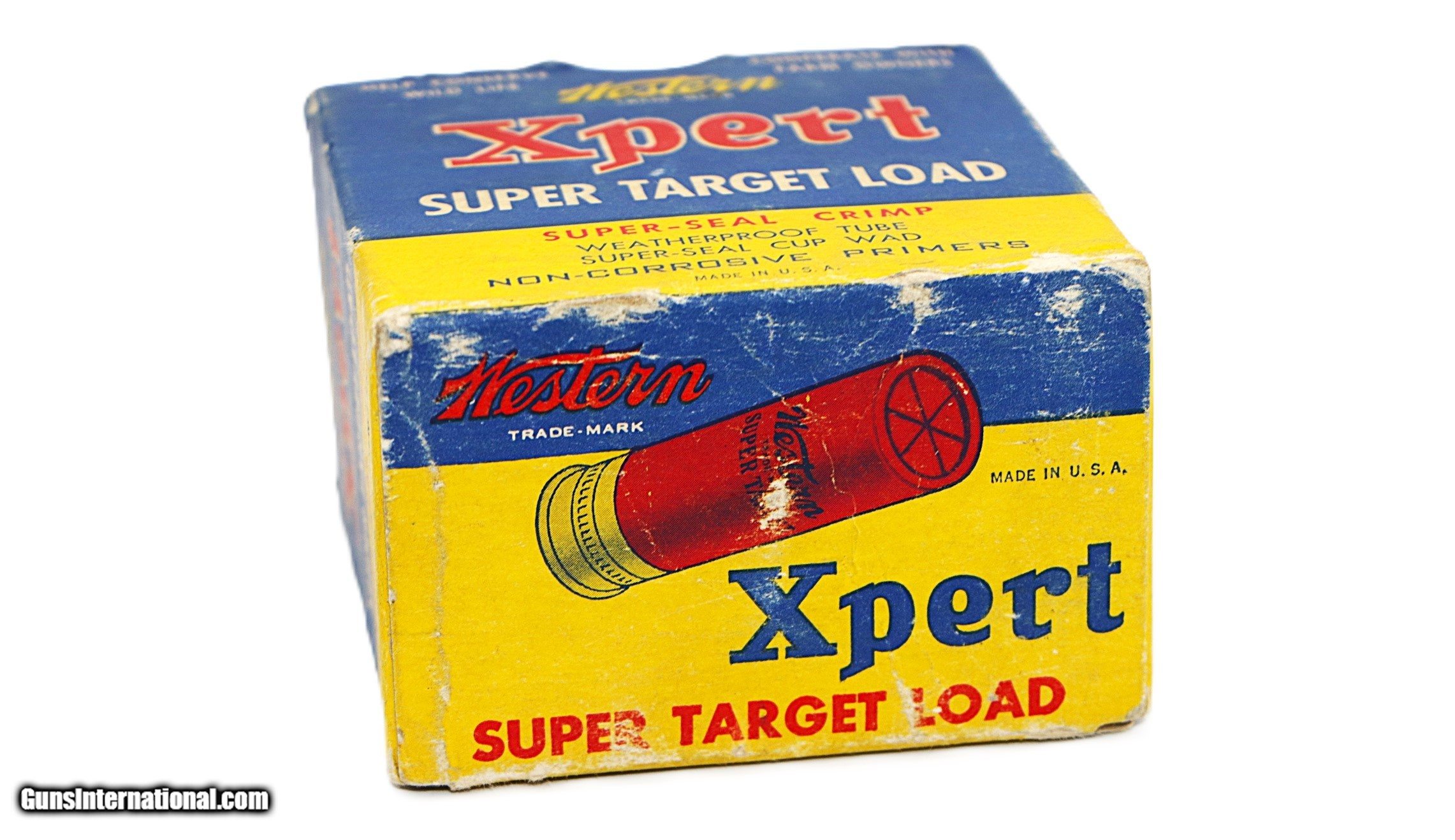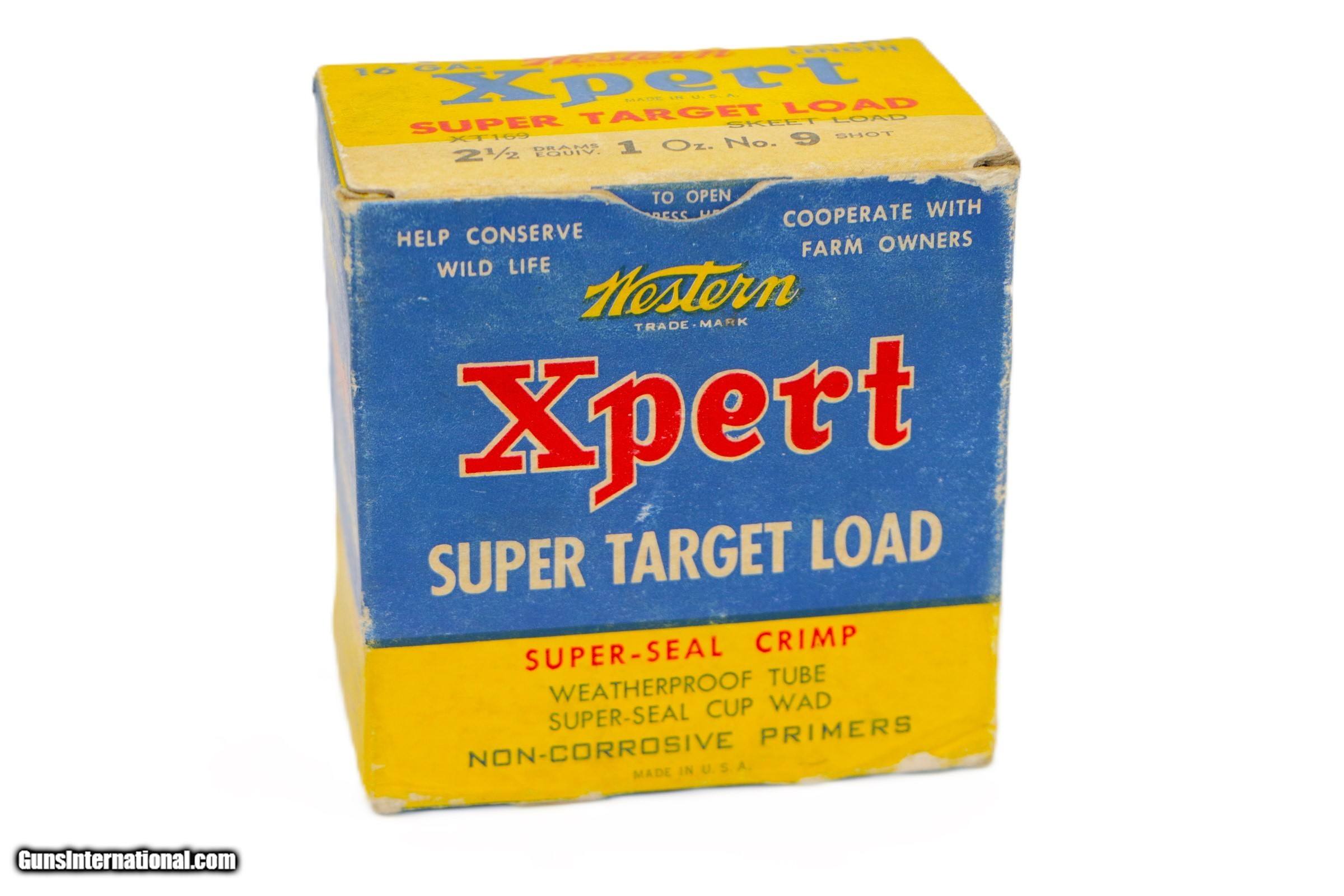 Description: Western Xpert, Super Target Load, 12ga., 1pc., Full, shot size 9 Skeet, 2 3/4''. Box is solid with some scuffing and shelf wear, mostly on bottom flap. Includes original insert. 25 Factory Shells are mint. Add $16.50 S+H SOLD