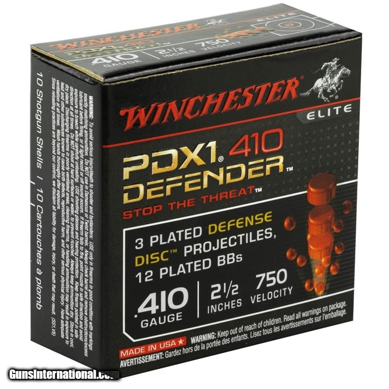Winchester PDX1 Defender 410 Bore Ammo 2-1/2" 3 Defense Discs / 12 Plated BBs Case of 100 Rounds S410PDX1