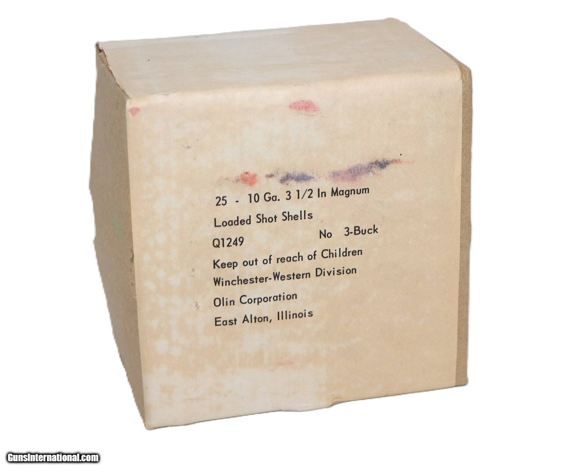 Description: Winchester Western Div of Olin Corp, Sealed 2-Pc Box of 10 Ga, 3-1/2" Magnum Shot Shells, No. 3 Buckshot. Box is VG with light staining Shotgun Gauge: 10 Gauge Price: $85.00 Shipping: $17.50 Contact Seller |