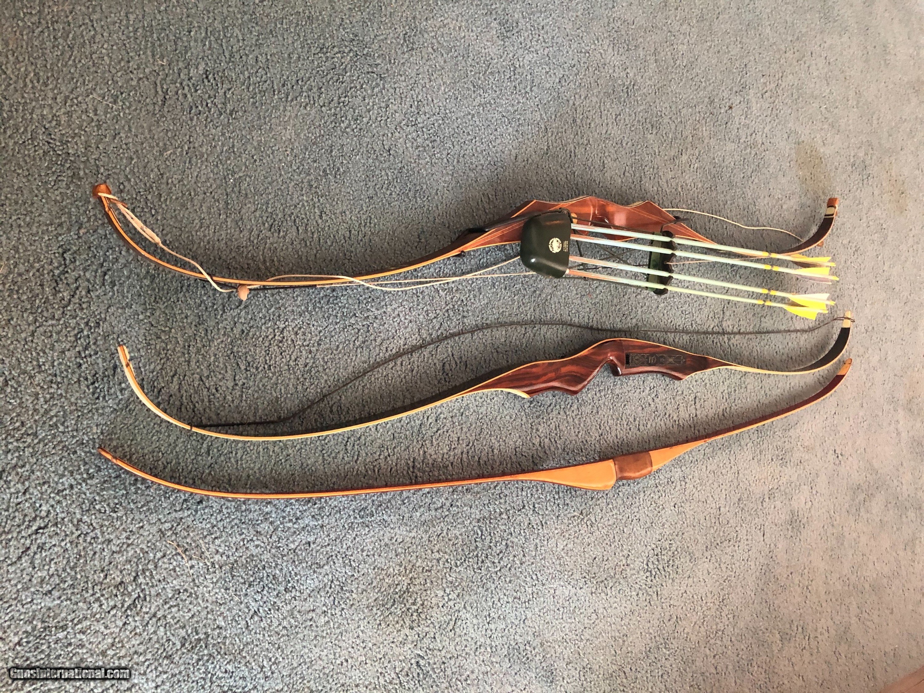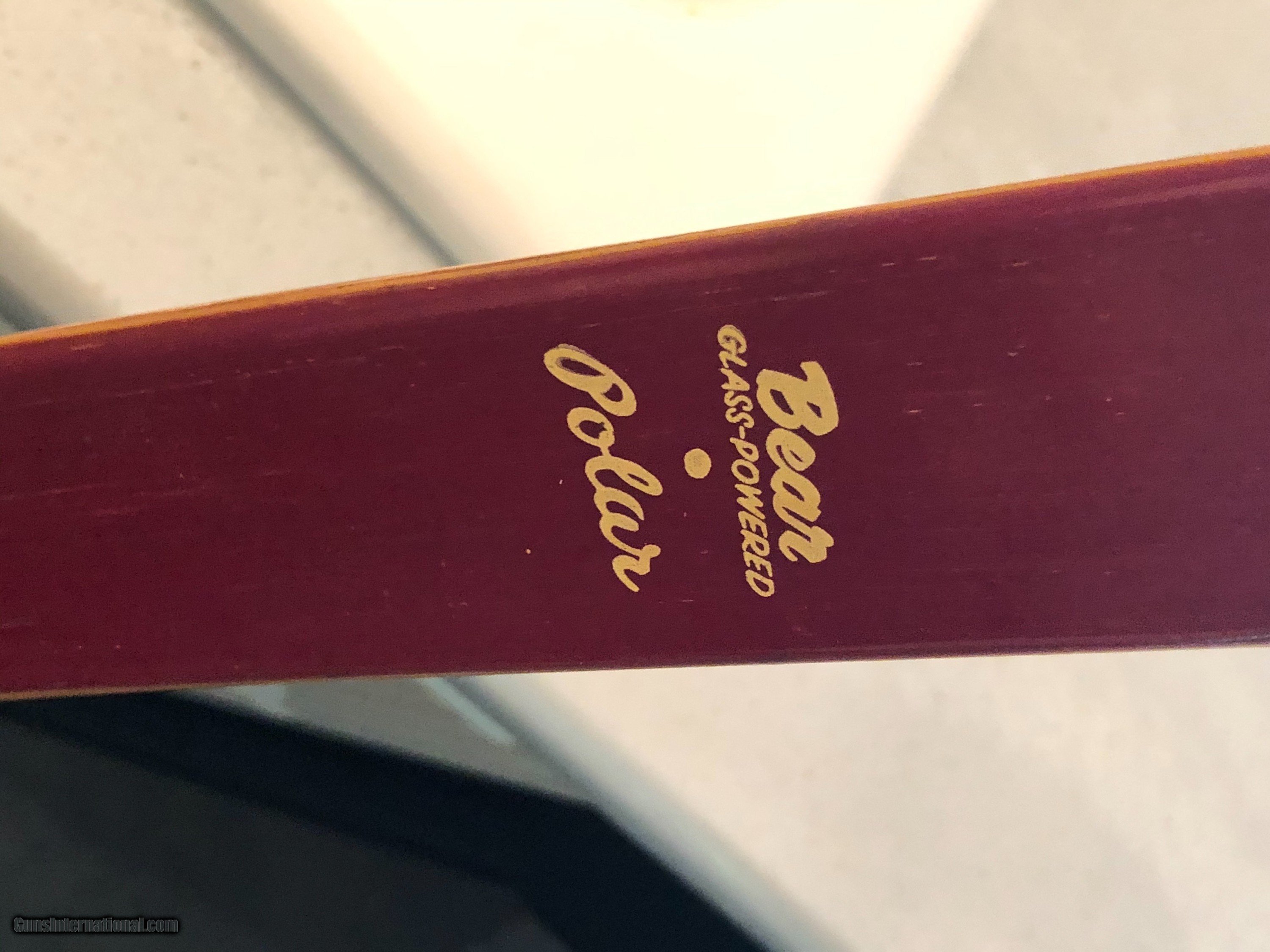 Description: Bear Kodiak, #65933 64" #40 Bow with 5 arrows. Full Recurve. Bear Polar #9E681 64" #30. Semi Recurve. Bear Polar # AND496 64" #48. $300.00 for all of the above. SOLD |