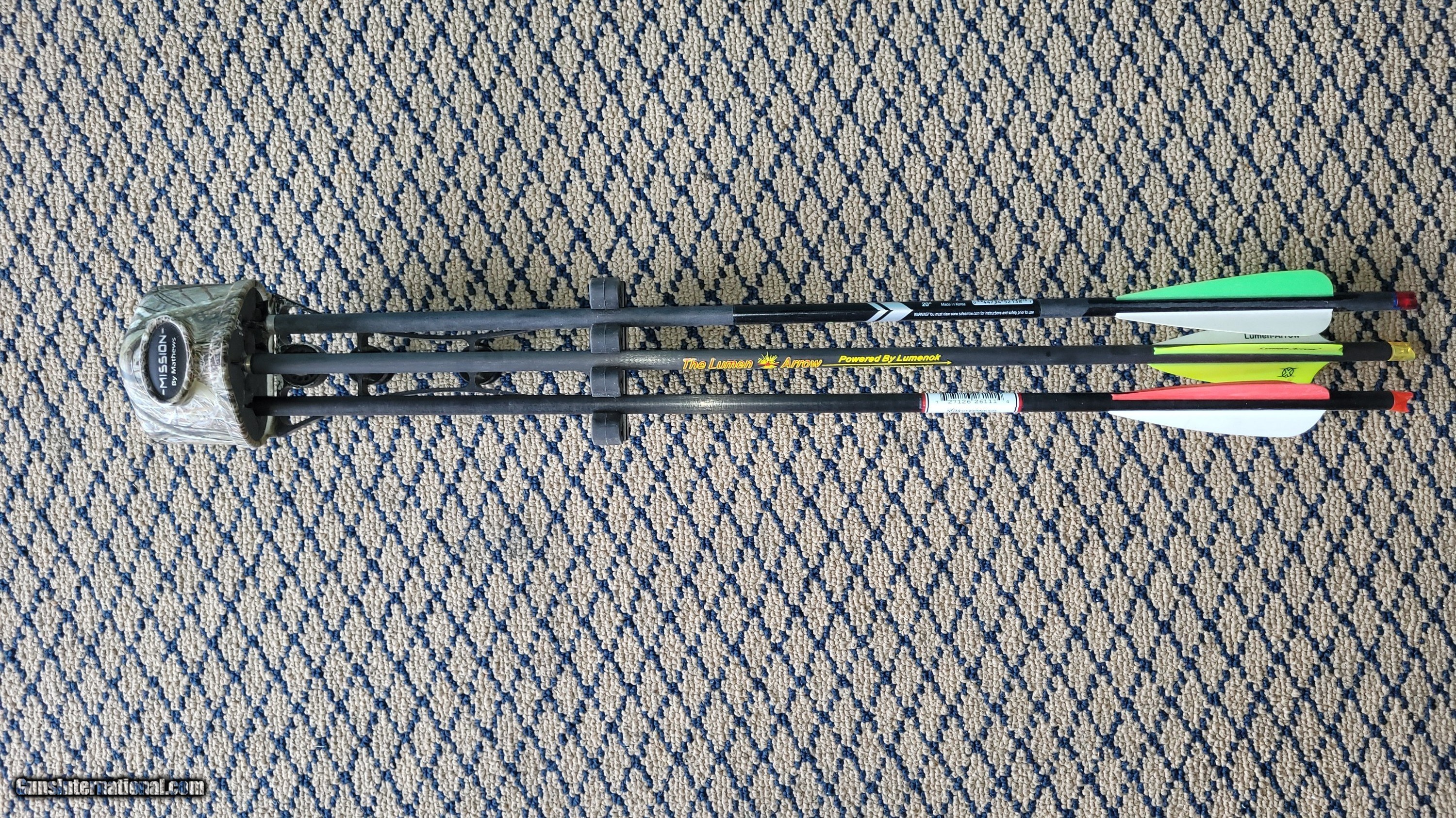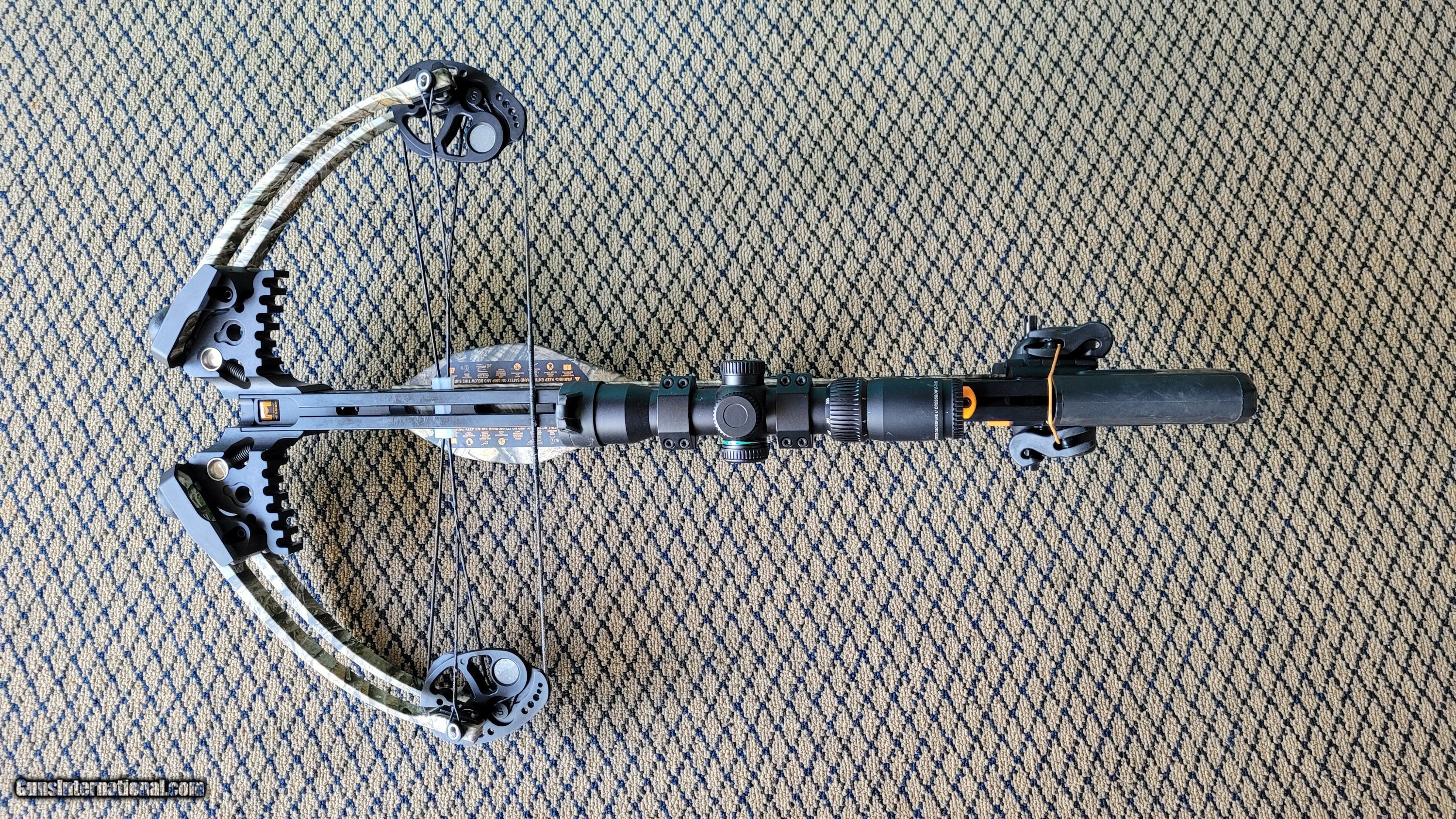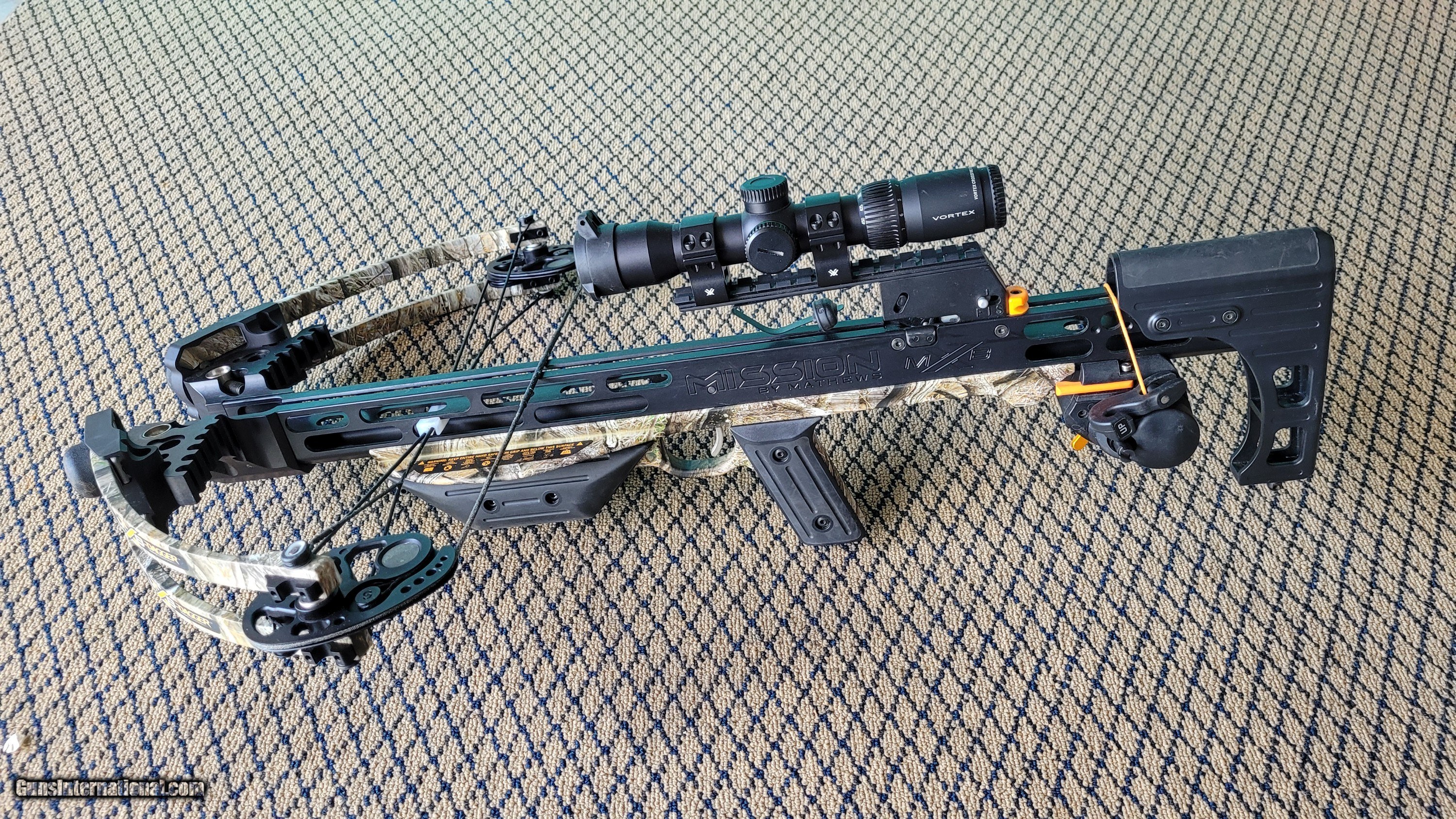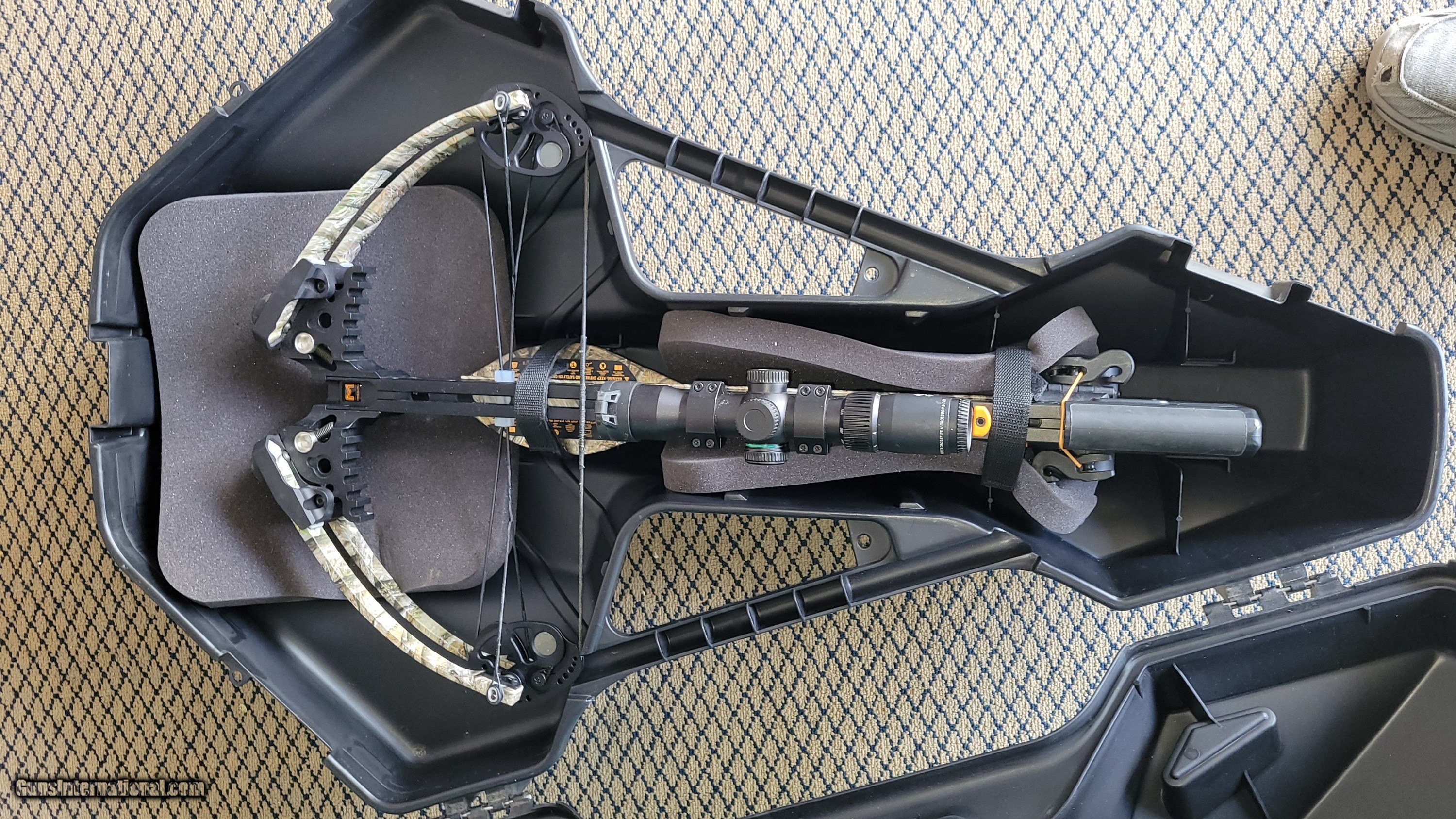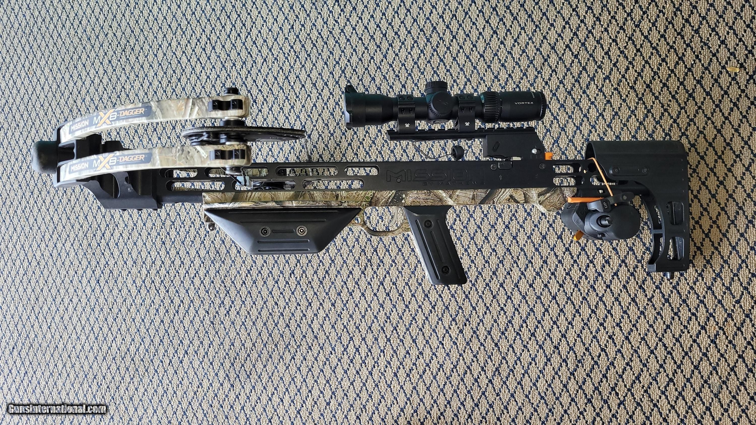 Description: Everything you need for crossbow hunting. Mission by Matthews Dagger model crossbow, incredible accuracy shot after shot. 340 fps, 30 in L x 19.5 in W , 6.3 lbs weight, with 2 RSD ( Removable Silent Draw) cocking cranks, 1 mounted, 1 spare. 1 Plano Spire hardcase, w/padding and straps. Mission softcase w/ 2 side compartments. Upgraded Vortex scope, 2 - 7 x 32 mm. 1 decocker bolt, 33. 20 inch carbon bolts, some w/ lighted nocks. 3 plastic bolt cases. 1 bow mount quiver. Comparable to current model, Mission Sub Lite - 1, MSRP $1,899 without all the extras. Over $2,400 in total original cost. Original owners manual included. Shipping cost based on your zipcode and added to selling price. SOLD |