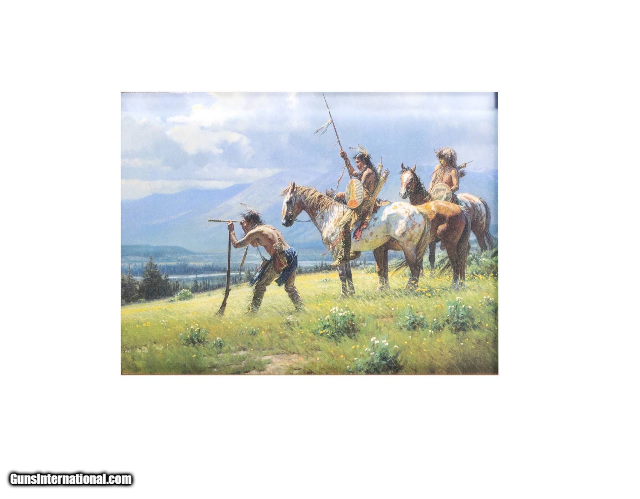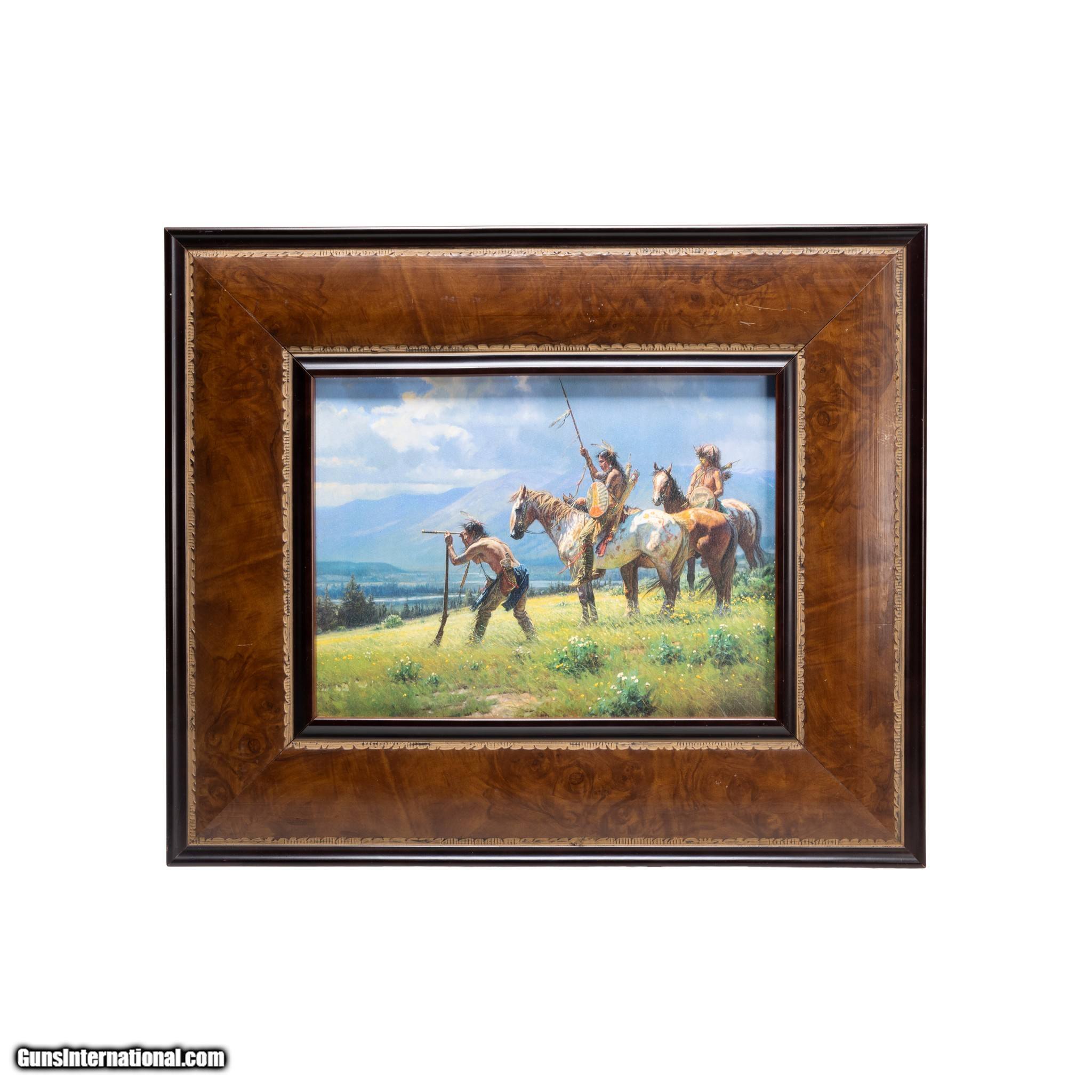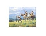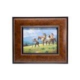 Description: "Dust in the Distance" by Martin Grelle. Framed giclee on board. Piece features three Native American warriors, two on horseback and one surveying something in the distance. Well made print that would display nicely in a Southwestern style farm or ranch house or a rustic home or cabin. Size: 10" x 13". Framed. Family Owned & Operated Cisco’s Gallery deals in the rare, exceptional, and one-of-a-kind pieces that define the history of America and the Old West. Our pieces range from American Indian to Cowboy Western and include original items of everyday life, commerce, art, and warfare that tamed America’s frontier. Our 14,000 square foot gallery opened in 1996 in beautiful Coeur d’Alene, Idaho. Personal Service Cisco’s operates on old fashioned values – honesty and integrity, and all of our items are backed by our money back guarantee. We appreciate the opportunity to earn your business. Whether you desire assistance with a jewelry purchase, choosing a gift, identification, or even selling – we hope to be your trusted source. SOLD |