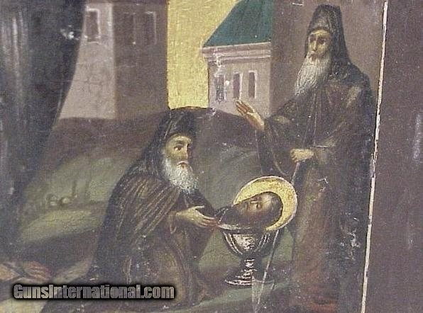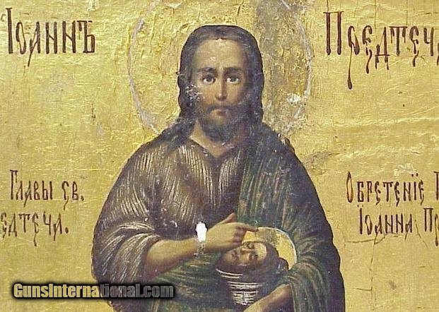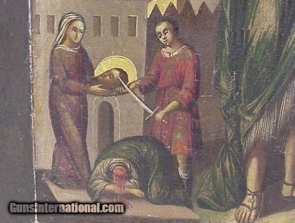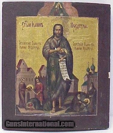 Description: "Russian Icon depicting the beheading of John the Baptist. Measures overall 12"" x 10.5"". SOLD |