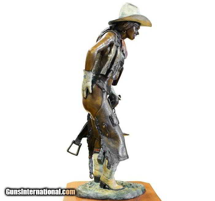 Description: "Saddle Sore" Limited Edition No. 1/25 by J.L. Snodgrass with revolving stand. PERIOD: Contemporary ORIGIN: Boise Idaho SIZE: 24"H x 10"W SOLD |