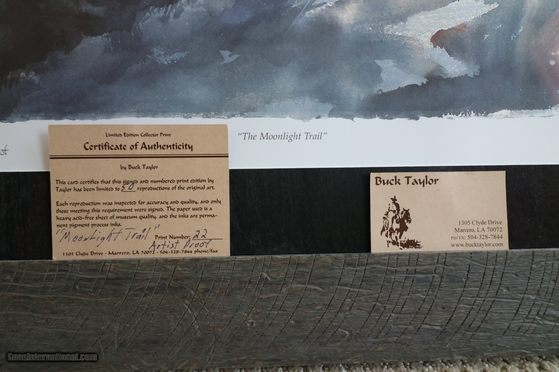 Description: Reproduction number 22 of 50 signed and dated by Buck Taylor.Frame size is 30 9/16" x 26 7/16". Free shipping,MAKE OFFER,Thank you for your interest. SOLD |