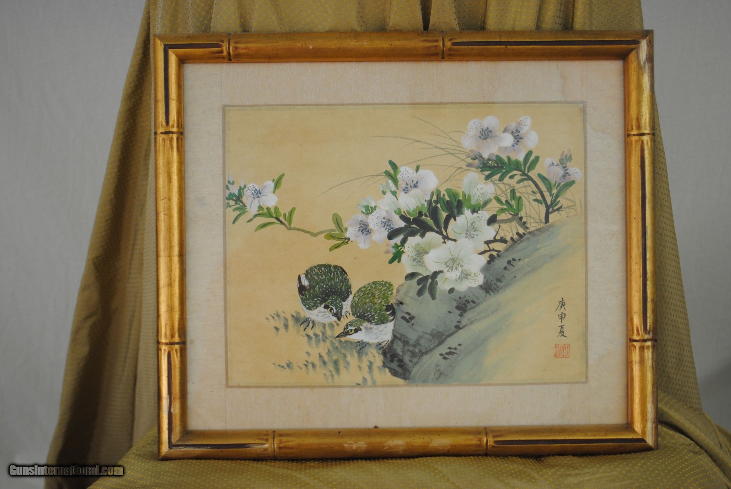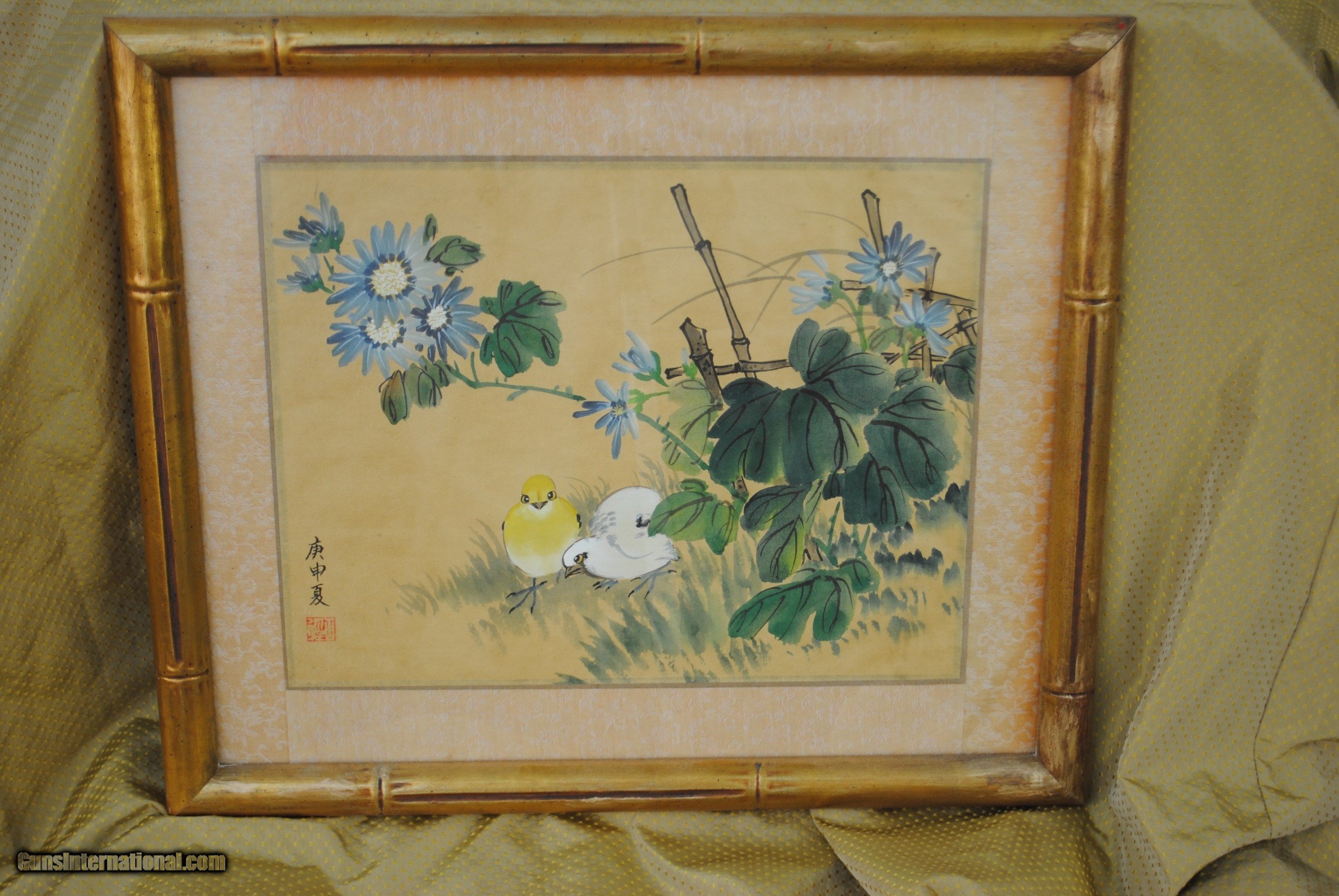 Description: Here is a set of 3, (known as a triptych in the art world) game birds series artwork. . Appears to be hand painted on a silk material. The border is integral to the material. One of the series is clearly pheasants, while the other appears to be a type of partridge. One is a pair of young brids, bred of which is unknown to me. These are original and hand made and not a reproduction in any way. The external dimensions of the frame is 17 1/2" x 14 3/4". Frames and artwork are in excellent condition. On the back of every frame is written "Presidents/Imperial Suites". Shipping is $50. For inquiries please call Guy - 407-721-3748 SOLD |