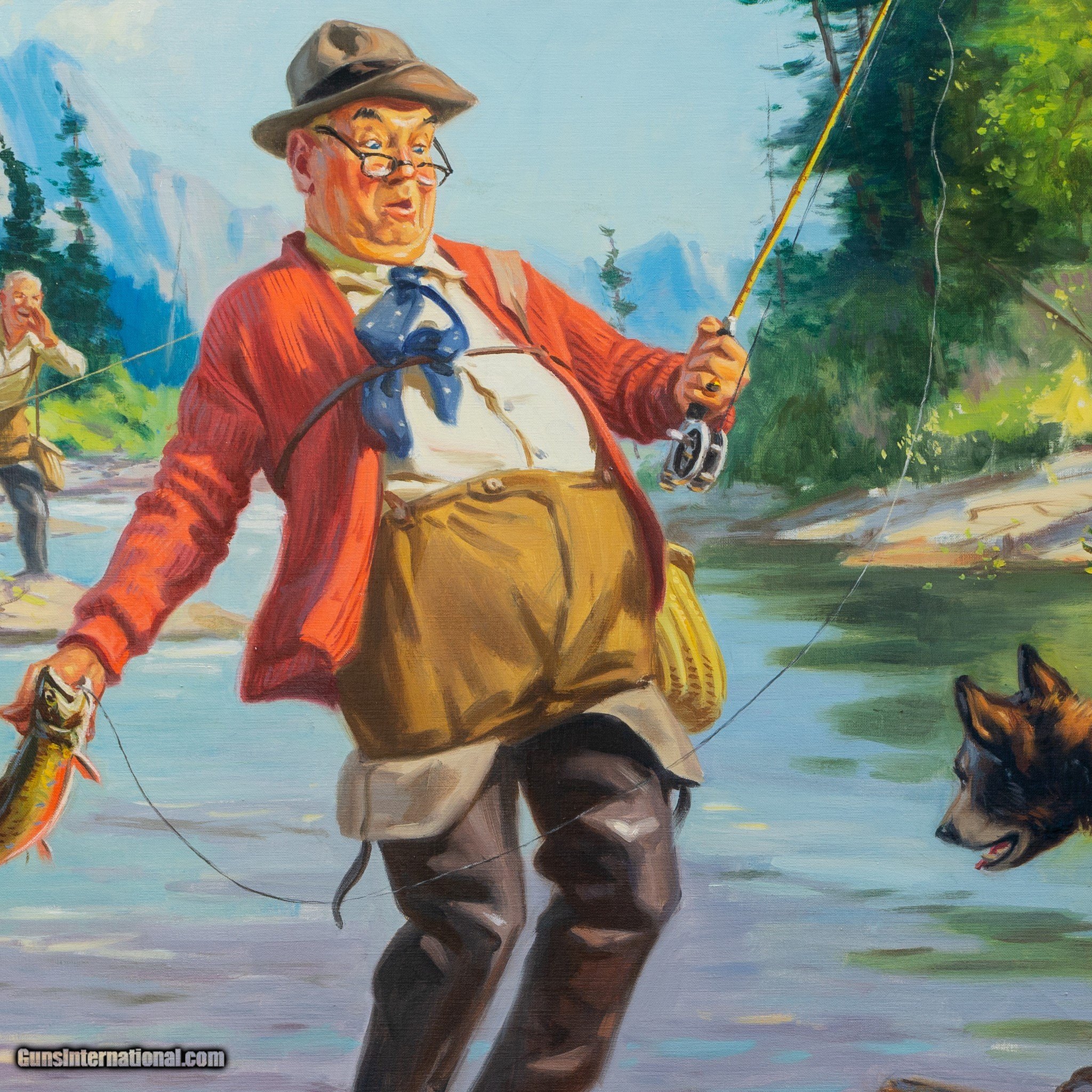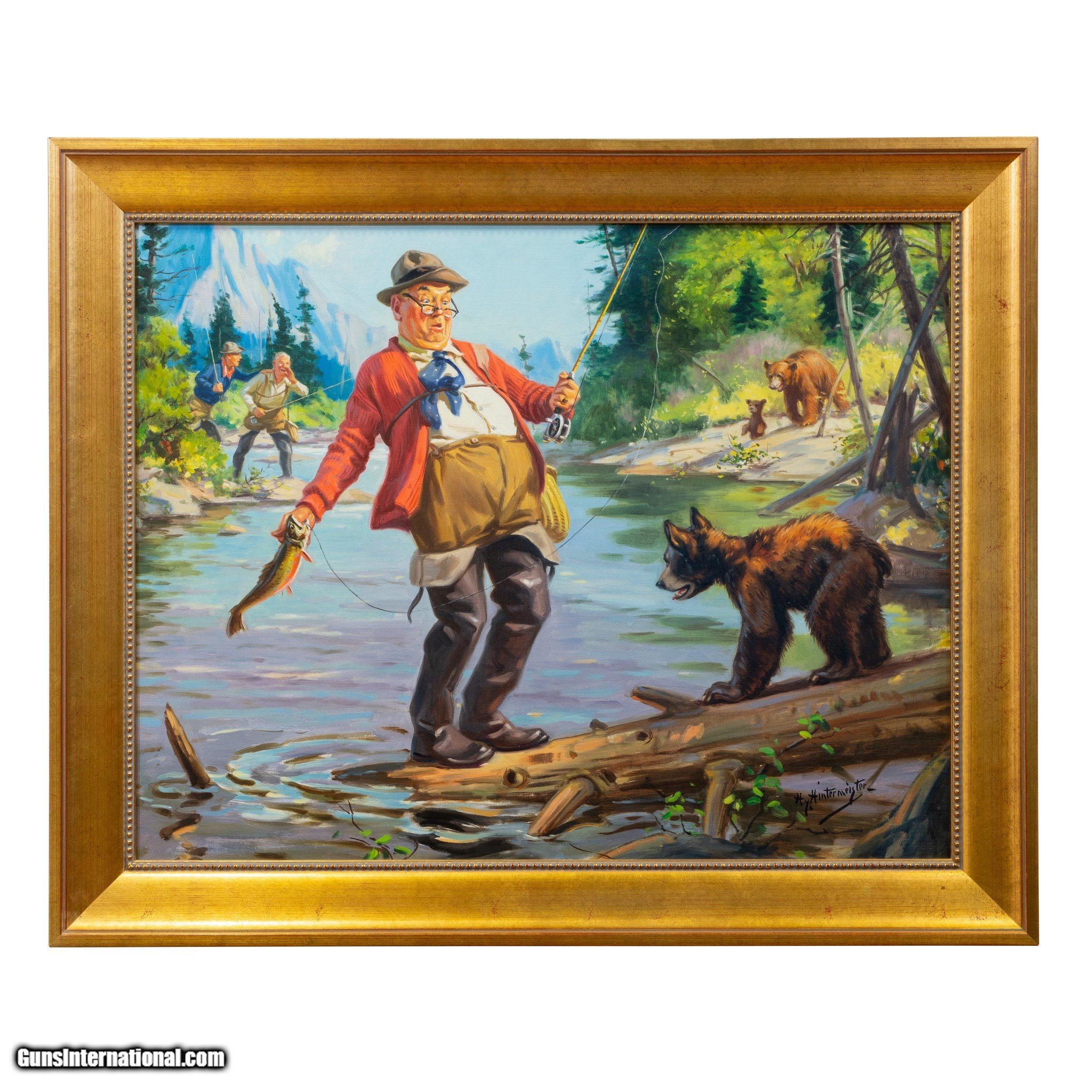 Description: (1897 - 1972). Let's Negotiate by Hy Hintermeister oil on canvas; 22" x 27". From the archives of the Shaw Barton Calendar Co.; used for early calendar print. Part of the Humorous Fishing series he started. John Henry "Hy" Hintermeister was born in 1869 in Winterthur, Switzerland. After studying art at the University of Zurich, John turned down a teaching position in favor of immigrating to the United States where he found work as a courtroom artist for a local New York paper. His successful courtroom works soon shifted focus to illustration and magazine cover art. He worked with several calendar art companies including Brown and Bigelow, The Osborne Co., Louis F. Kemper Thomas and American Art Works. Referred to as John by his friends and family, he signed his art "Hy Hintermeister." From the 1890s-1940s John, along with his son, Henry, worked together producing over 1,050 illustrations ... Displaying 750 of 1081 characters. SOLD |