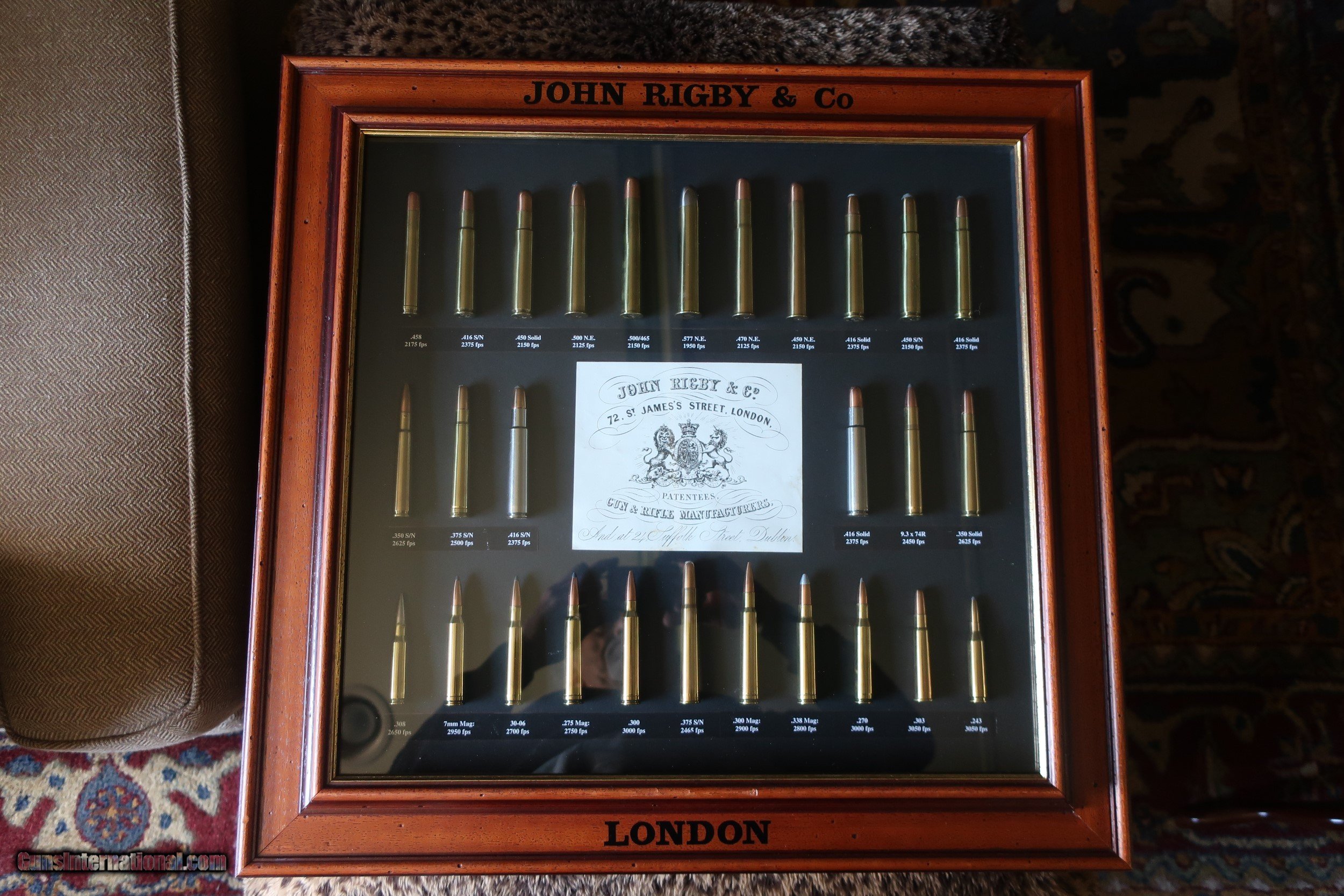 John Rigby & Co. Framed Cartridge Display