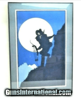 Description: Limited edition serigraph 97/450 by K. Appez '82. Five color serigraph of black, blue, slate blue and gray. Serigraph showing bow hunter descending mountain with a ram head on his pack. 31" x 19" Frame 26" x 38 SOLD |