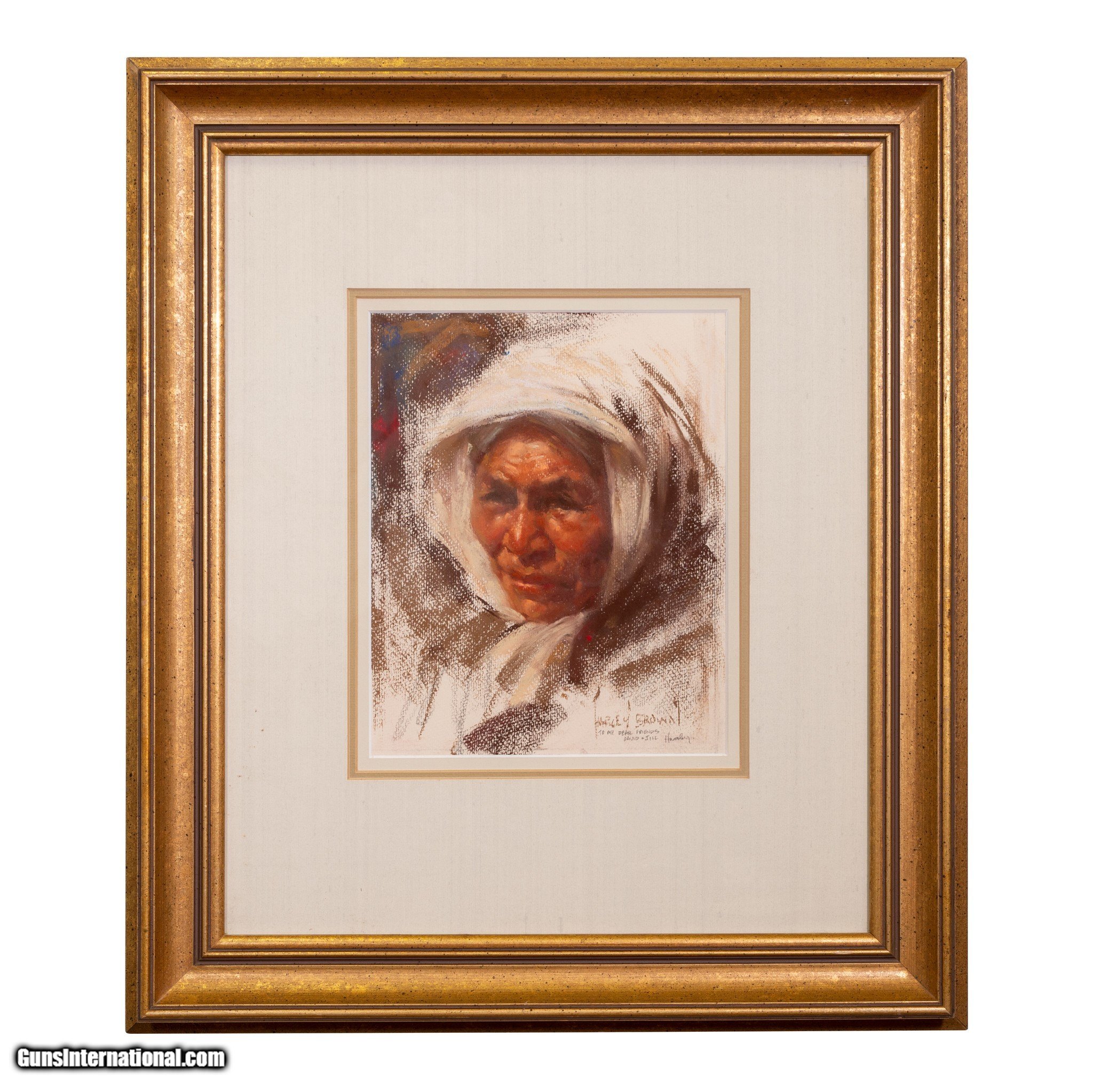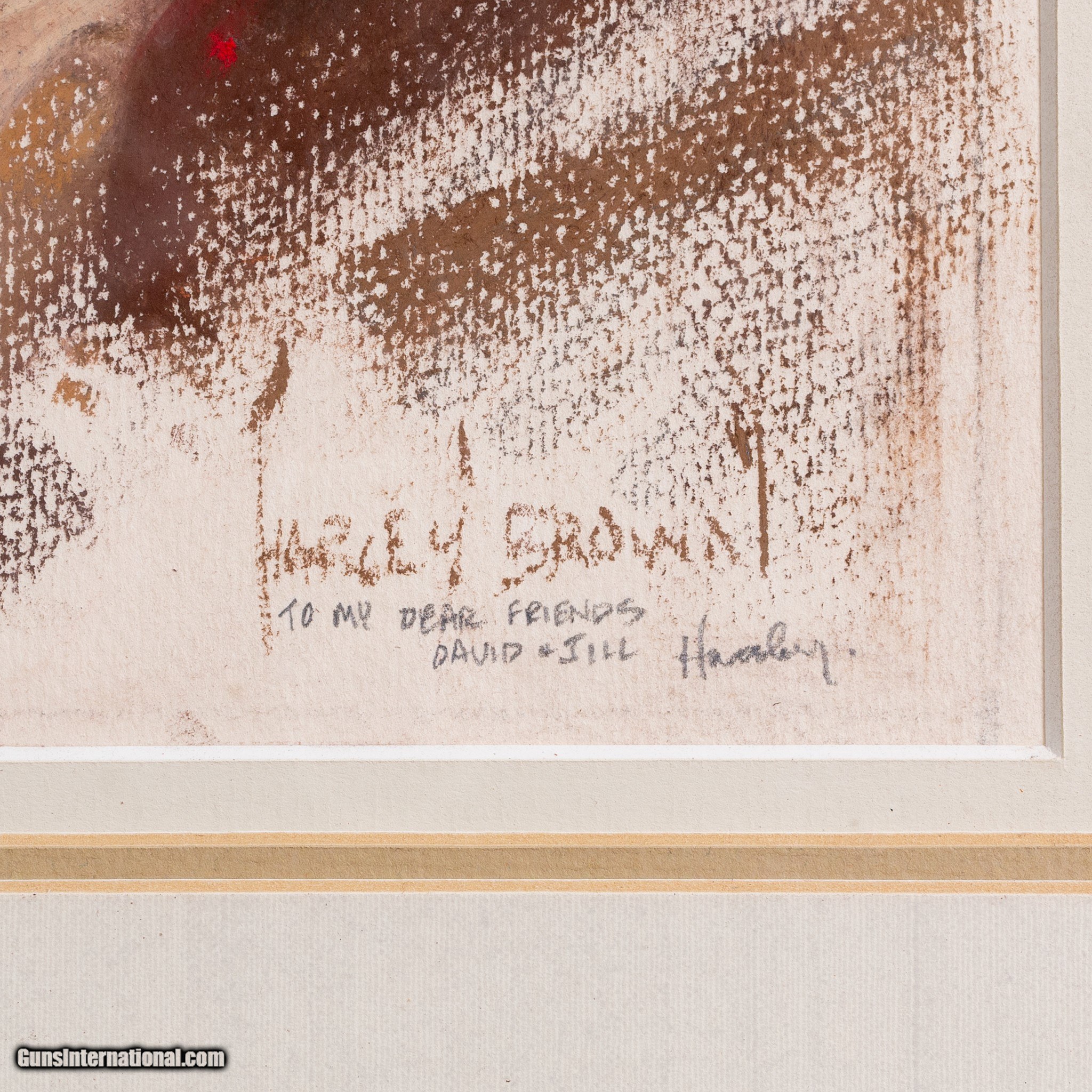 Description: Untitled; oil pastel on paper; 10" x 8". Signed lower right; inscribed " To my dear friends David and Jill - Harley" near signature. Gold finish wood frame with triple mat and glass. SOLD |