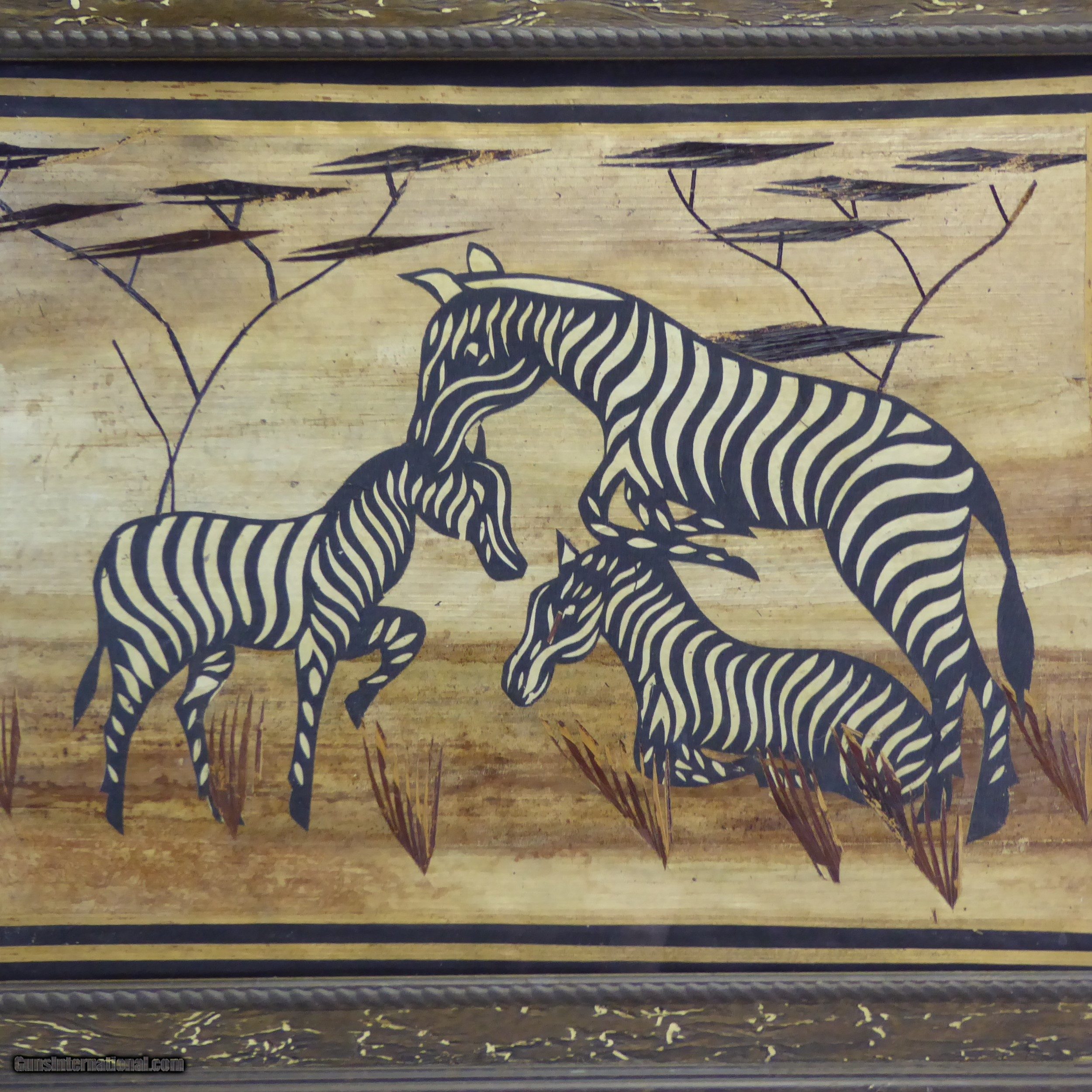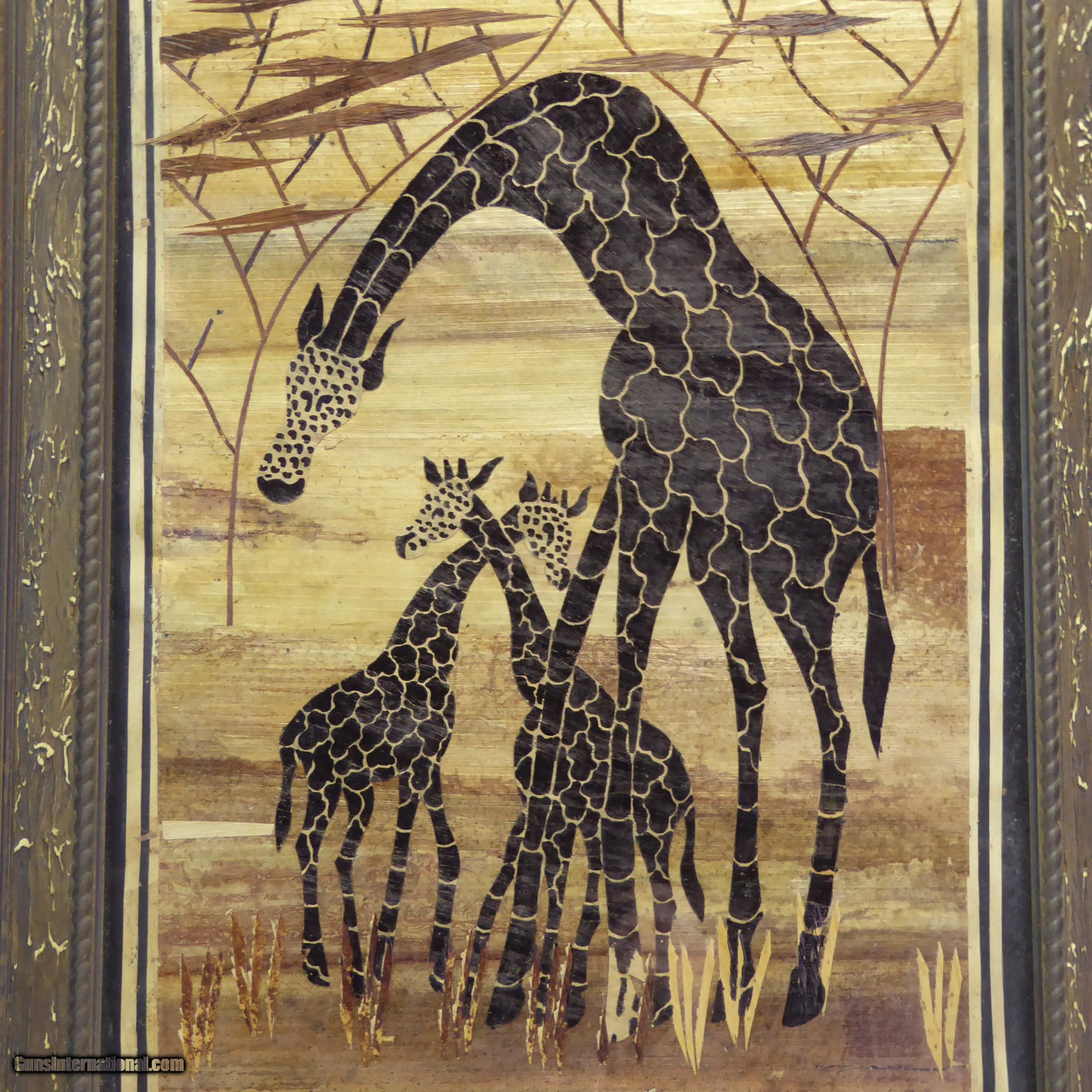 Description: Set of three African animals on rice paper, well framed. Giraffes, zebras, wildebeest. Size: 17" x 24 SOLD |