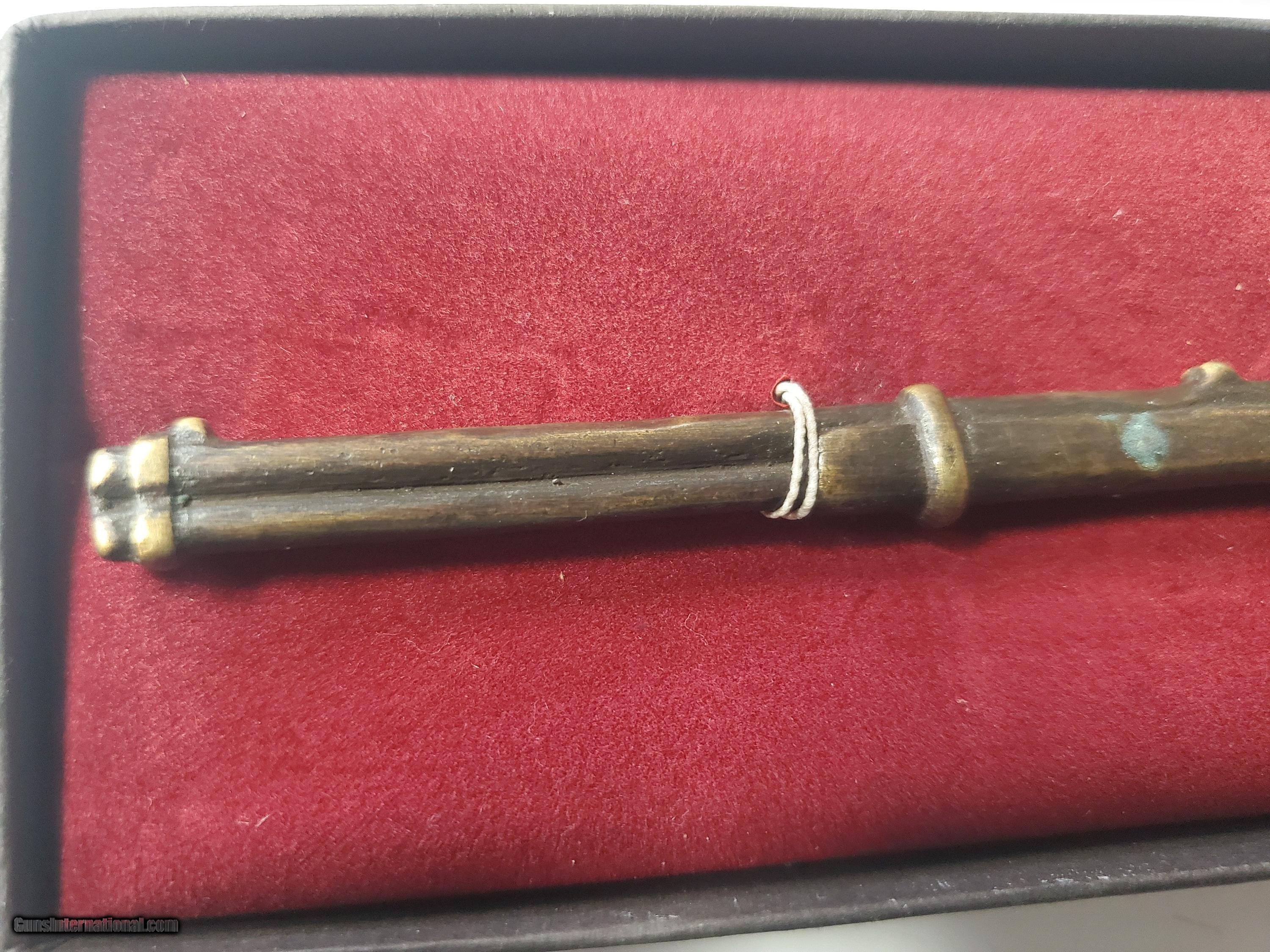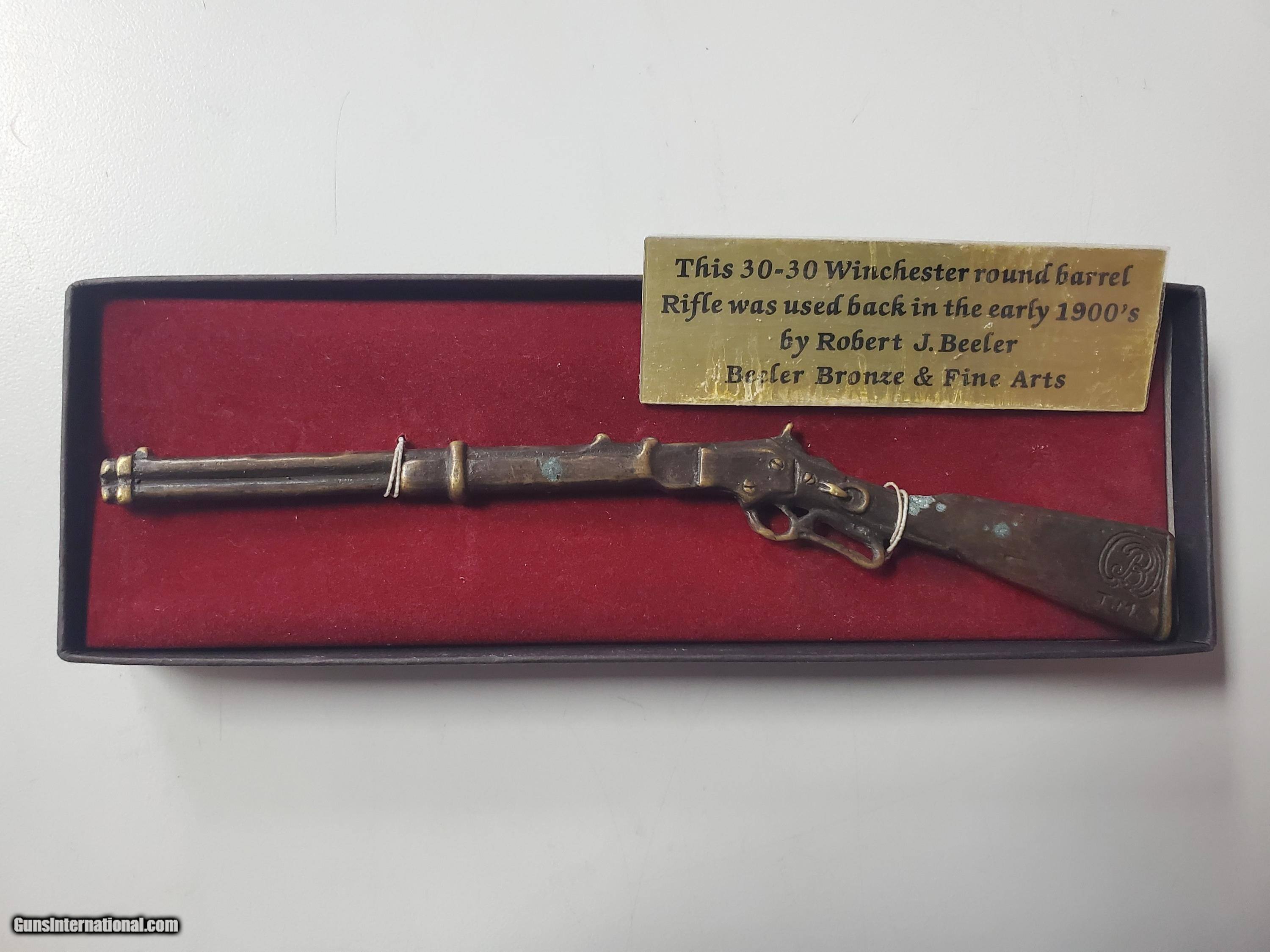 Description: Bronze miniature replica of a Winchester 30-30 lever action. Measures approximately 7 inches by 3/4 inches. Created by Beeler Bronze & Fine Arts. Shipping is $14.99. CONTACT INFORMATION To purchase a firearm or if you have any questions please contact the store during business hours at 1-541-900-1147 and ask for Steve or Jennifer. Our store hours are: Mon-Fri 10AM-6PM Sat 10am-5PM, Sun 10am-4pm Sellers Terms and Agreement We accept Visa, MasterCard, Discover, and American Express. Checks, Cashier’s Check and Money Orders: We accept USPS money orders only. ALL OTHER CHECKS AND MONEY ORDERS ARE HELD UNTIL THEY CLEAR OUR INSTITUTION AND THE FUNDS ARE RELEASED TO US. (Typically, 3 days) Orders are not shipped until our institution releases the funds to us. Please Note: That all card transactions (Credit/Debit) will be charged a 3% Credit Card Fee at the time of purchase. California Sales $25 fee to acquire shipping approval to a California FFL. IT IS BUYEERS RESPONSIBLILTY TO VERIFY FIREARM IS CALIFORNIA COMPLIANT. Alaska and Hawaii Sales There are extra shipping costs. Please request a quote before . Product Photos Please carefully look at each and every photo to ensure the condition of the item(s) in question. We do our best to take accurate photos that not only show off the quality of our items, but to also point out any marks or flaws. Shipping Long Guns cost: $35 if firearm has box/ $60.00 if we need to provide box for shipping. Used long guns will be shipped in a hard case and box. Handguns cost $65 for Shipping 2nd Day Priority Mail. Ammunition and Parts Costs vary, please inquire for estimated shipping costs based on destination, package weight and size. Orders are normally shipped within 3 business days after receiving payment and FFL. But please allow up to 5 business days for us to process and ship your order. Cancellations – Firearm(s) cancellations will incur a 15% restocking fee, unless exchanged for an item(s) of equal or greater value. 3-day Inspection/ Return Policy The 3-day inspection period Is for defects and to make sure the gun received is the gun ordered. If there is a manufacturing defect with the firearm, please notify us immediately so that we can do our best to remedy the issue in a timely manner. After a gun has been transferred to the customer, all issues must be handled through the manufacturer. International WE DO NOT EXPORT FIREARMS Contact Information: To purchase a firearm or if you have any questions please contact the store at 1-541-900-1147. Mailing Address: Freedom Tactical & Surplus, LLC 832 NW Garden Valley Blvd Roseburg, Oregon 97471 Thank you, Steve Elliott SOLD Rifle Caliber: .30-30 Winchester |