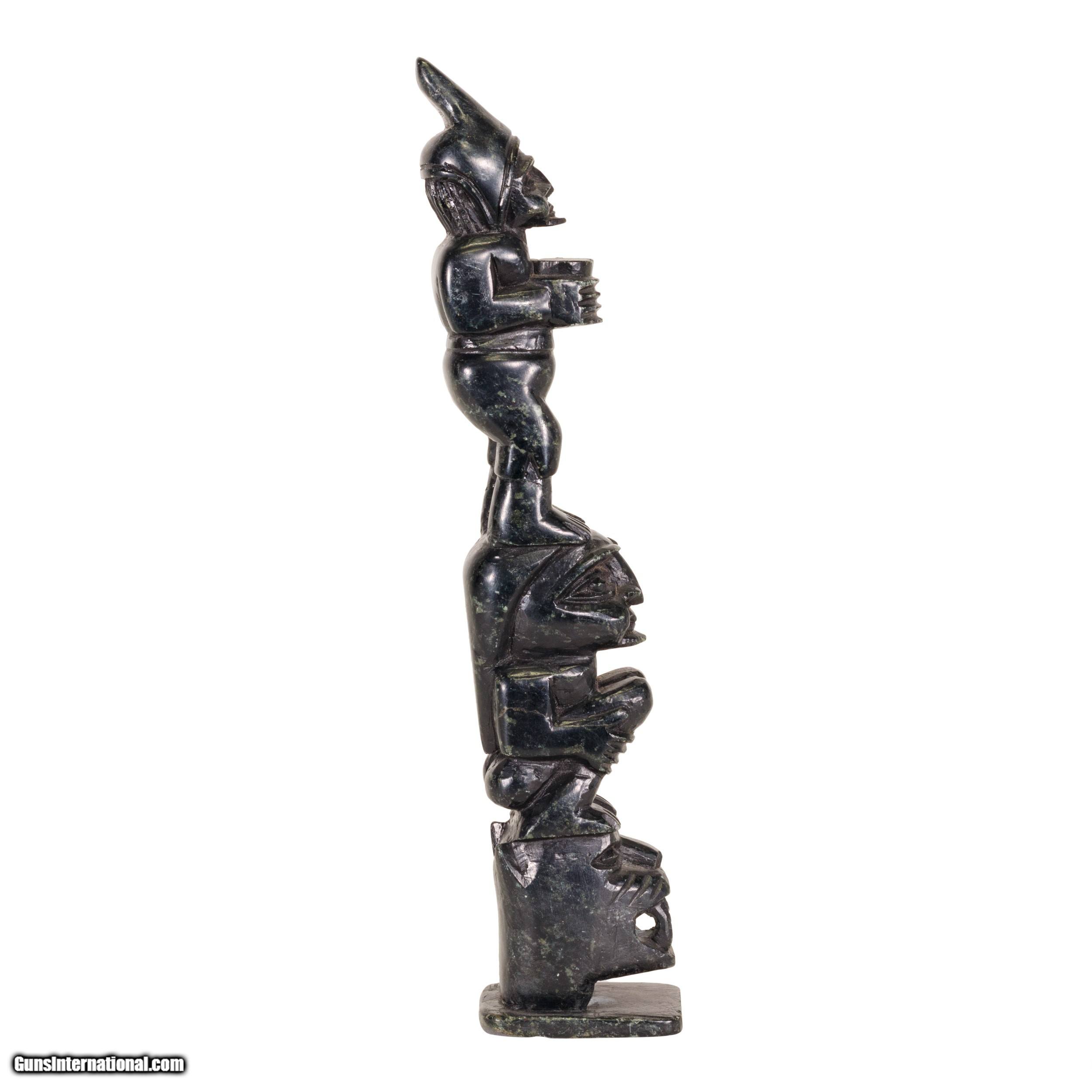 Description: South America onyx carving. Hand carved totem, unusual figures. 8 1/4". Not Native American carved but still remains desirable. 8 1/4". Last quarter 19th Century SOLD |
