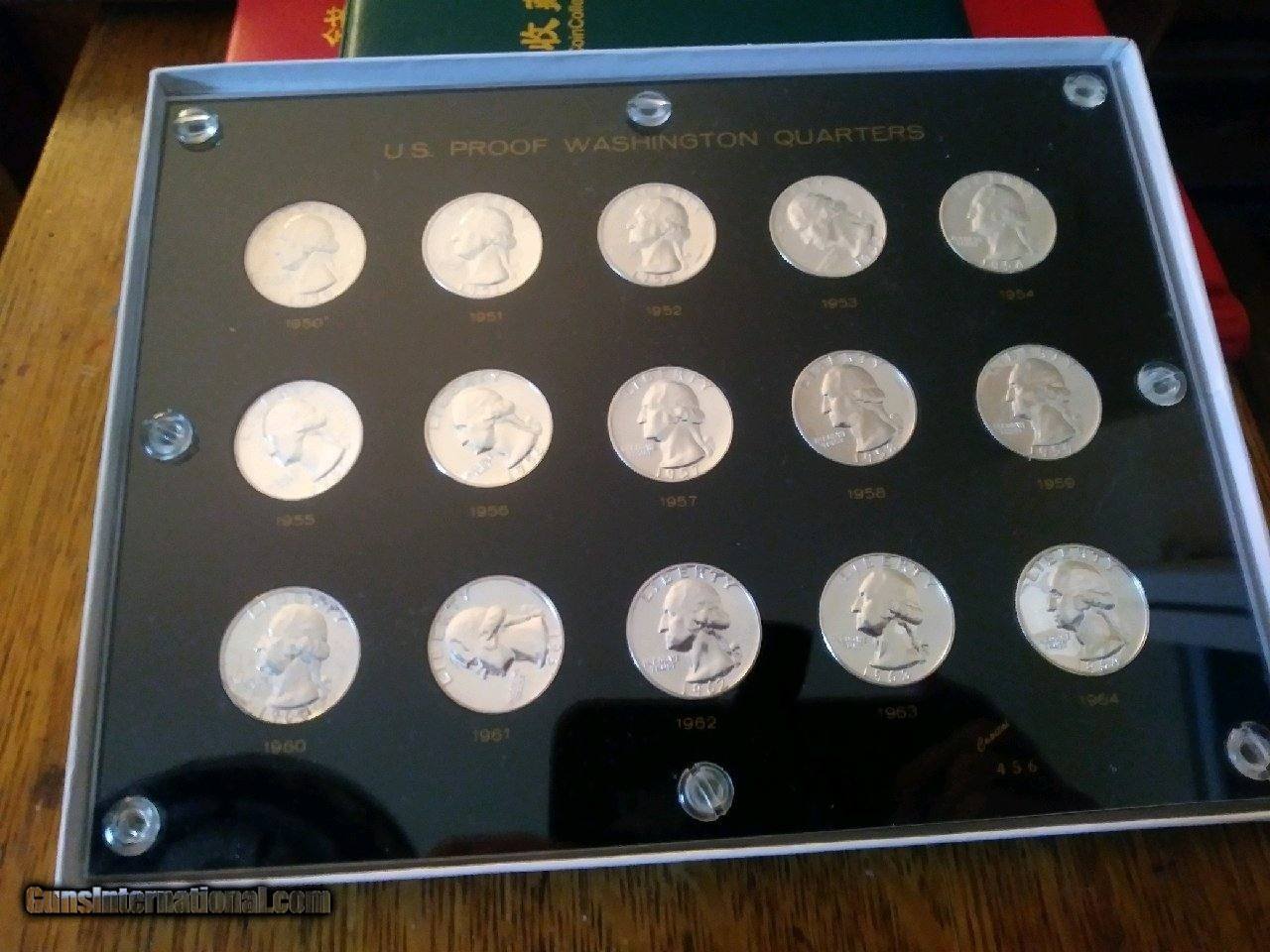 Set Washington Quarters Mirror Proof 1950-1964 In Boxed Capital holder
