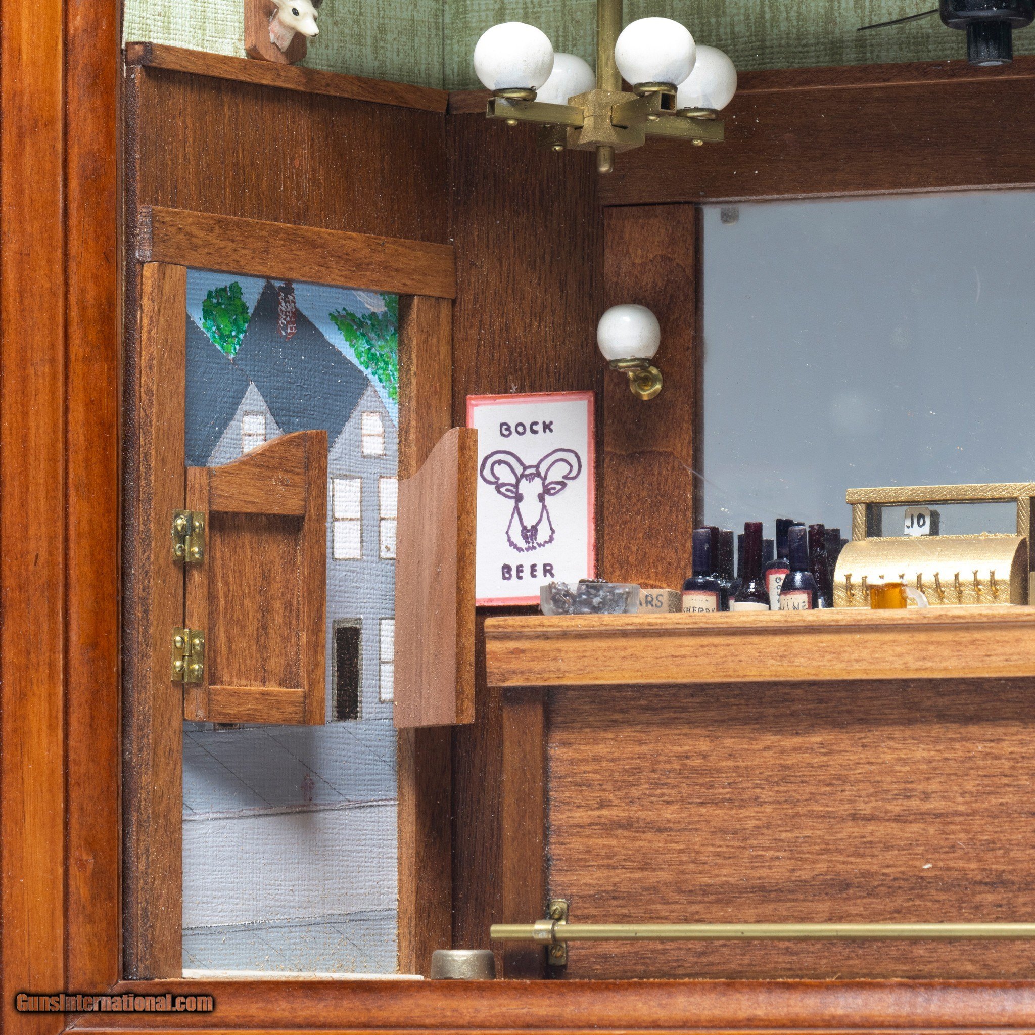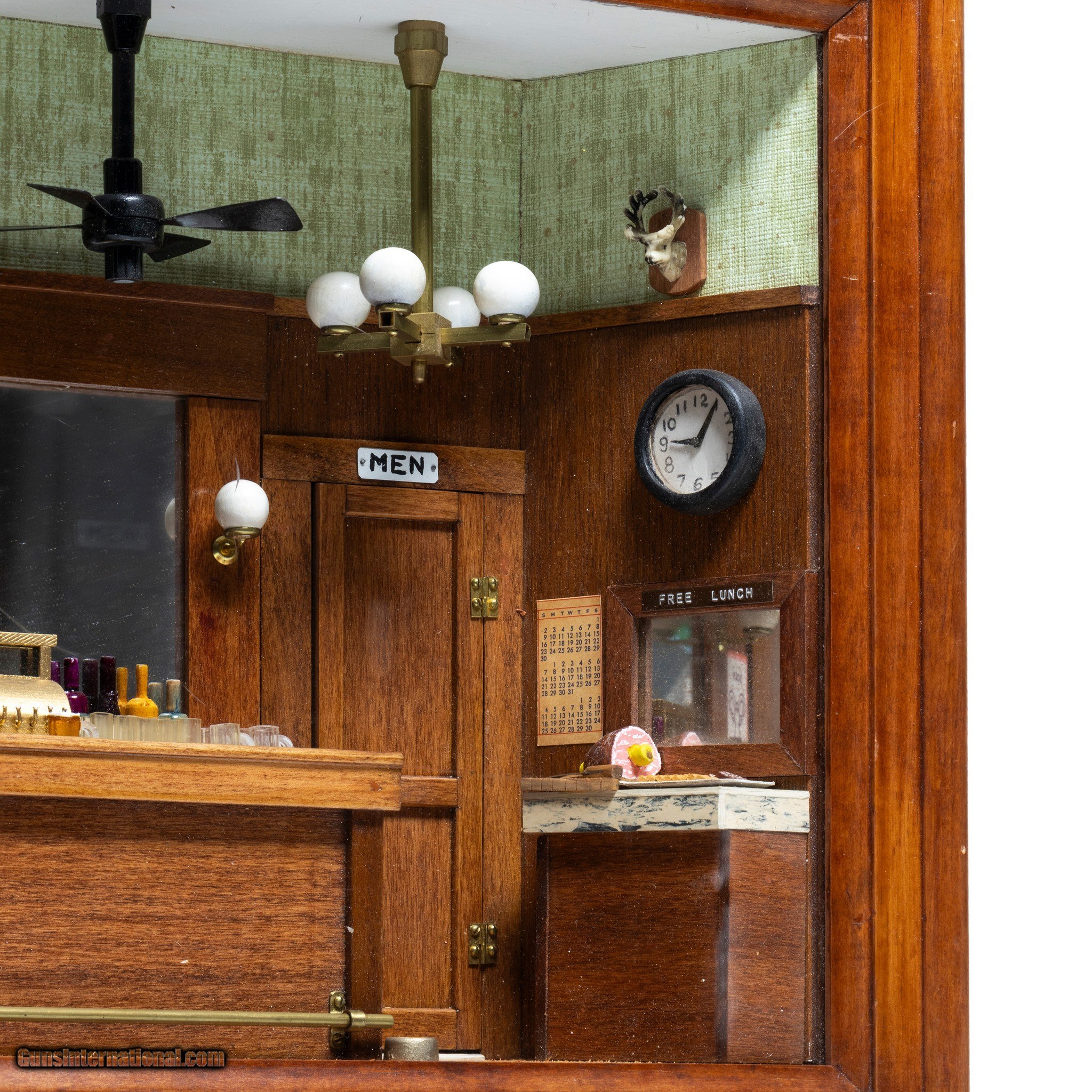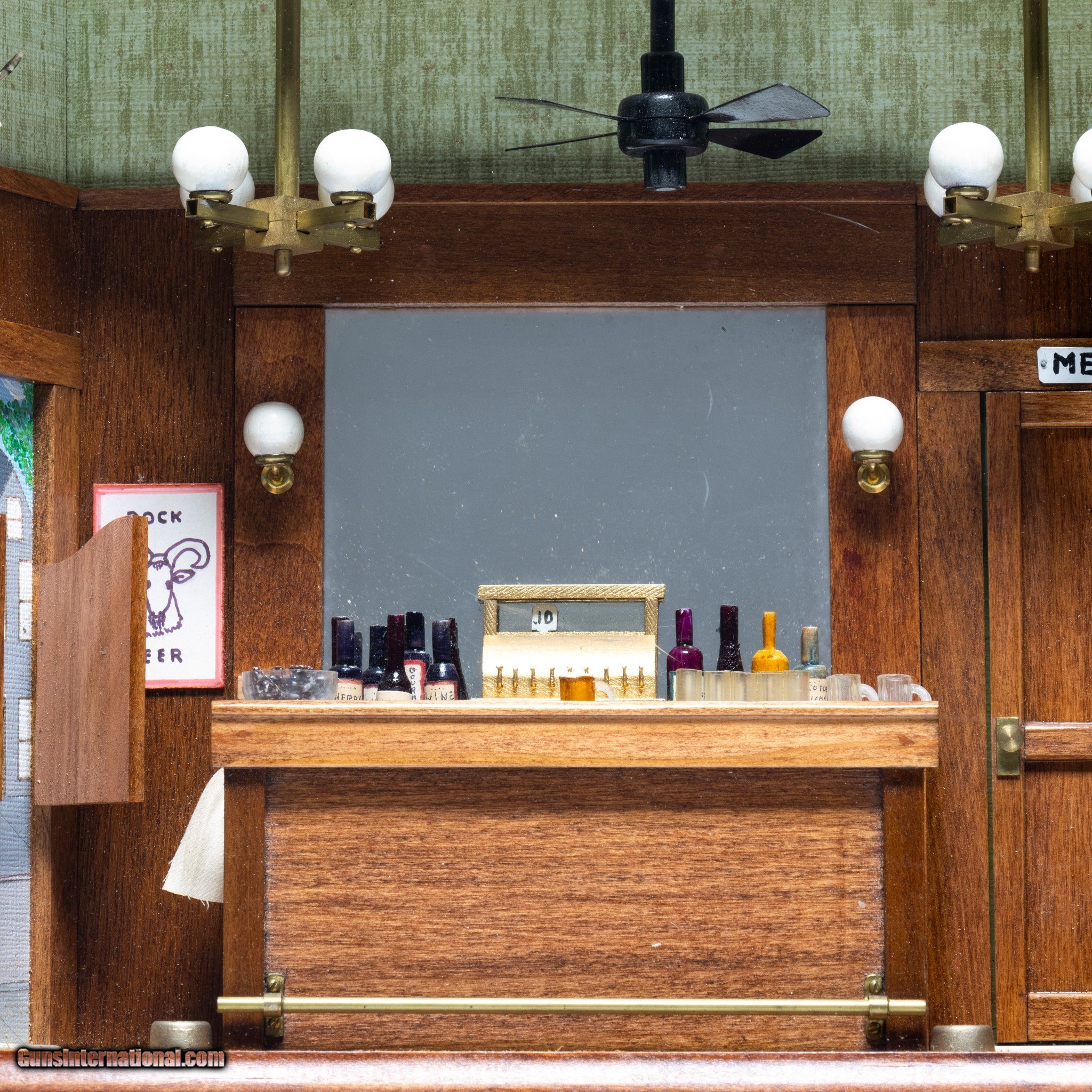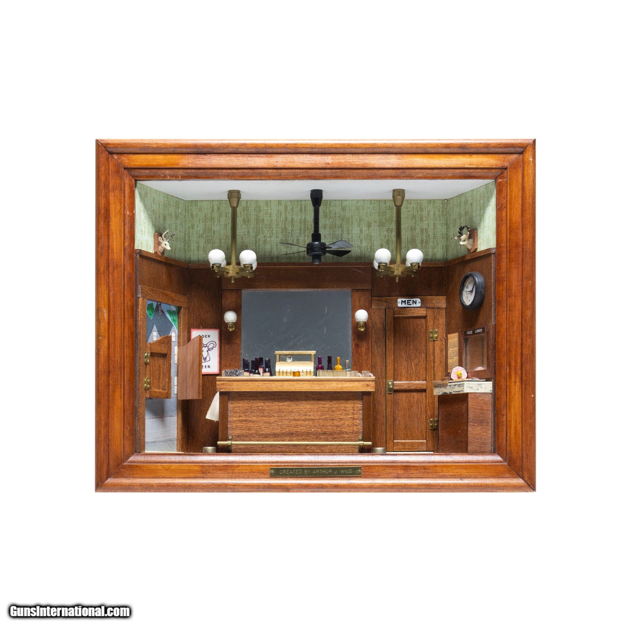 Description: Miniature tavern shadowbox diorama, undated. Behind glass in a wood framed box having wall anging and free standing capability and a brass label reading "Created by Arthur J. Wild." Family Owned & Operated Cisco’s Gallery deals in the rare, exceptional, and one-of-a-kind pieces that define the history of America and the Old West. Our pieces range from American Indian to Cowboy Western and include original items of everyday life, commerce, art, and warfare that tamed America’s frontier. Our 14,000 square foot gallery opened in 1996 in beautiful Coeur d’Alene, Idaho. Personal Service Cisco’s operates on old fashioned values – honesty and integrity, and all of our items are backed by our money back guarantee. We appreciate the opportunity to earn your business. Whether you desire assistance with a jewelry purchase, choosing a gift, identification, or even selling – we hope to be your trusted source. SOLD |