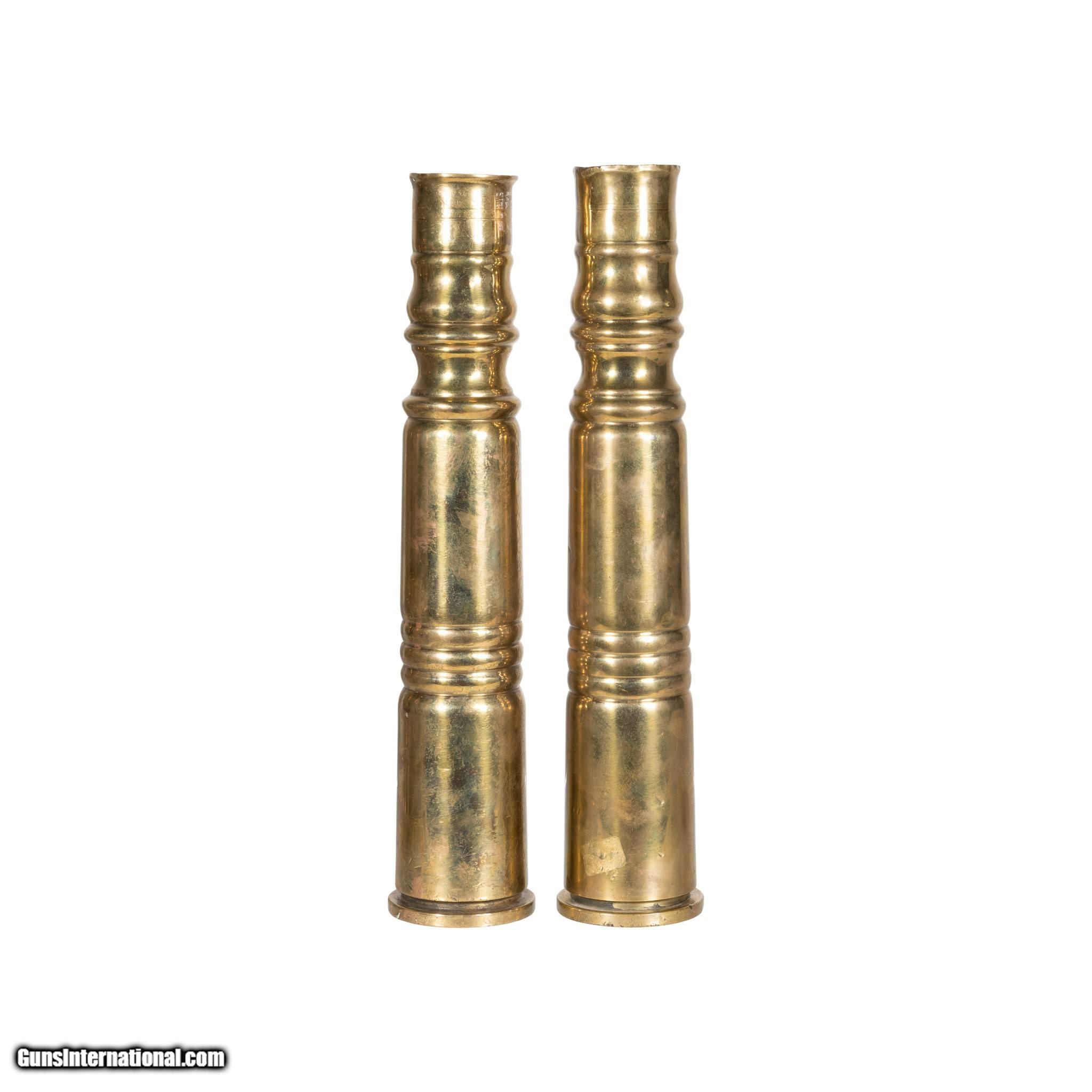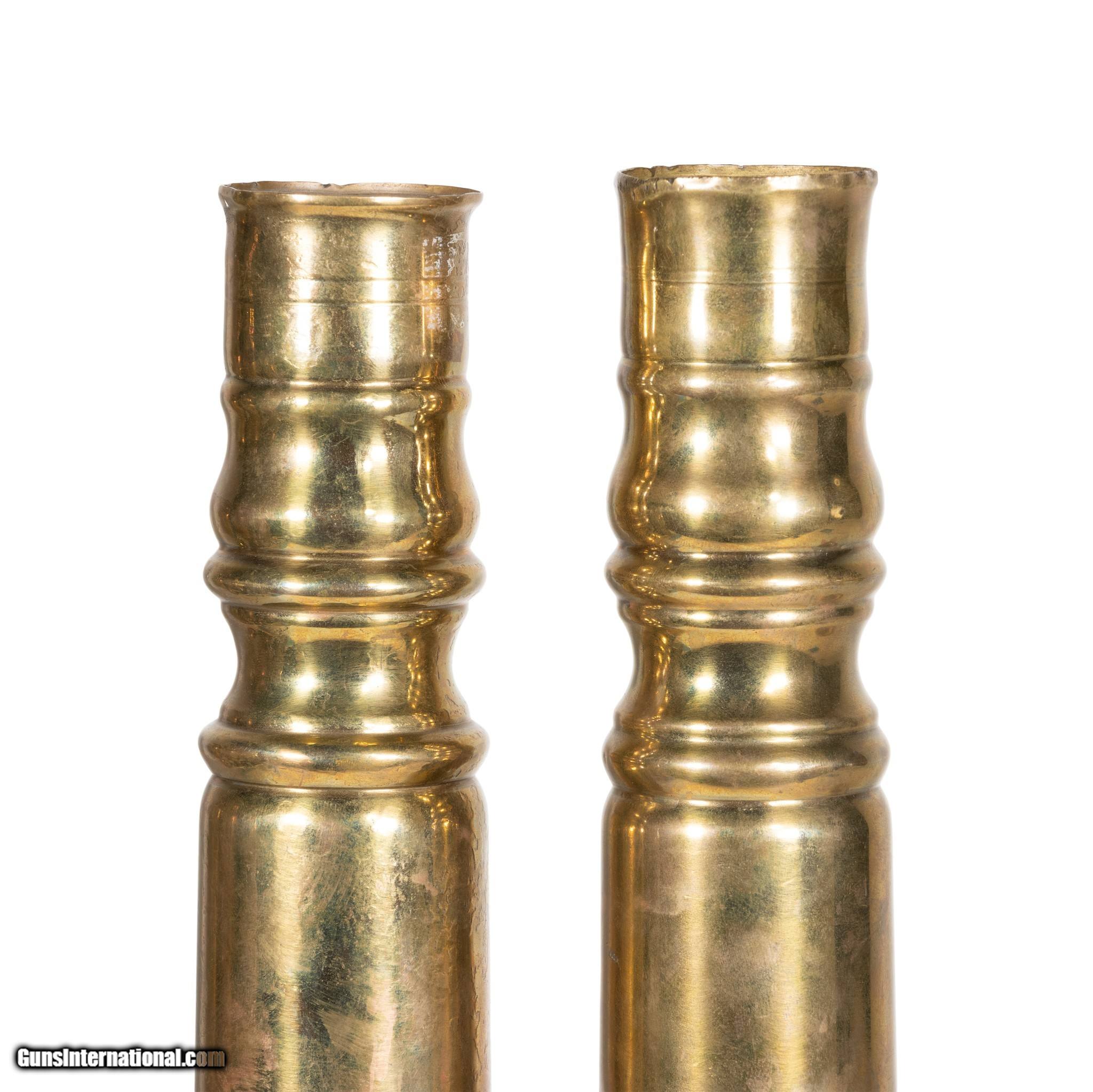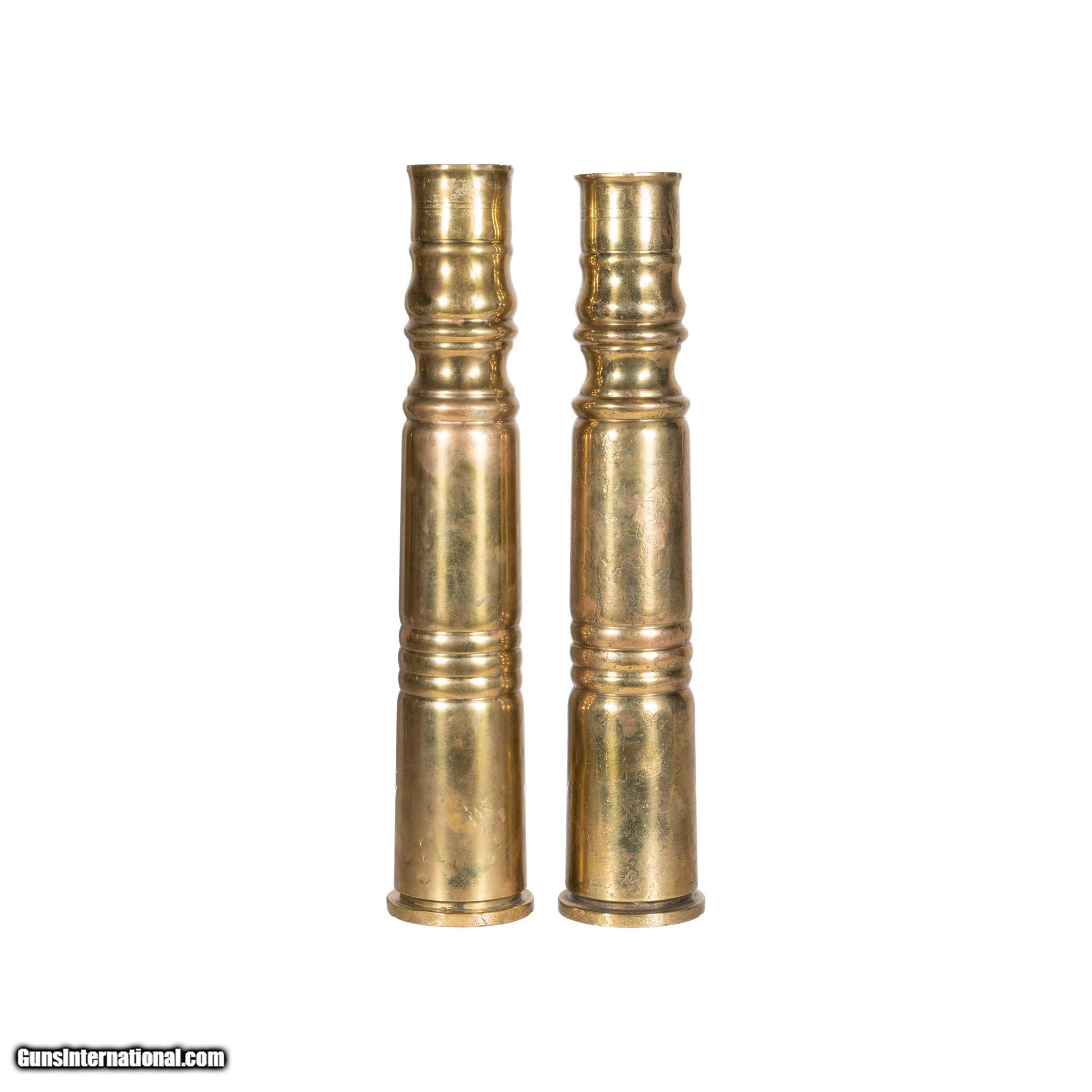 Description: A matched pair of brass WWI trench art cartridges. Pieces are well embellished and would make for excellent vases or candle holders. Marked 1945. Exceptional workmanship - we assume they were made on board a ship. Stunning piece of history that would make an excellent addition to a home's decor or your trench art or military collection. Size: 12"H x 2 1/2"base SOLD |