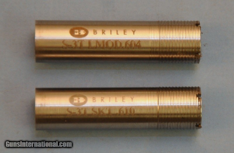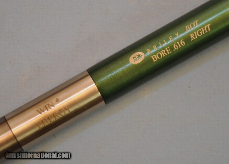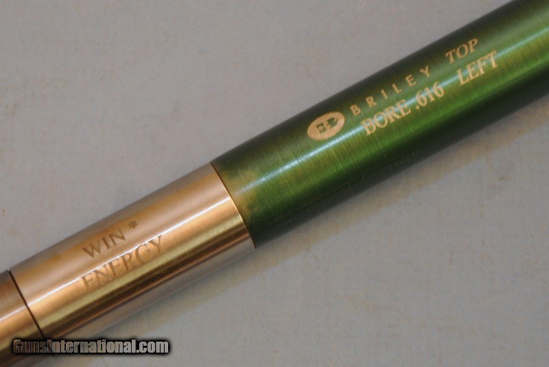 Description: Made to fit the Winchester Energy O/U shotgun as mfg. 2000-2008. Overall length 27-3/4". Outside diameter .730". Bore diameter .616". Includes 2 Briley stainless steel choke; S-3T, LMOD, 604" and S-3T, SKT, .610". One is marked "Bottom/Right" bbl., the other is marked "Top/Left". May be adapted for other guns with the same bore dimensions. Includes the seating tool and plastic case. New new condition showing some finish loss around muzzle of 1 tube. Priority mail $15.00 SOLD |