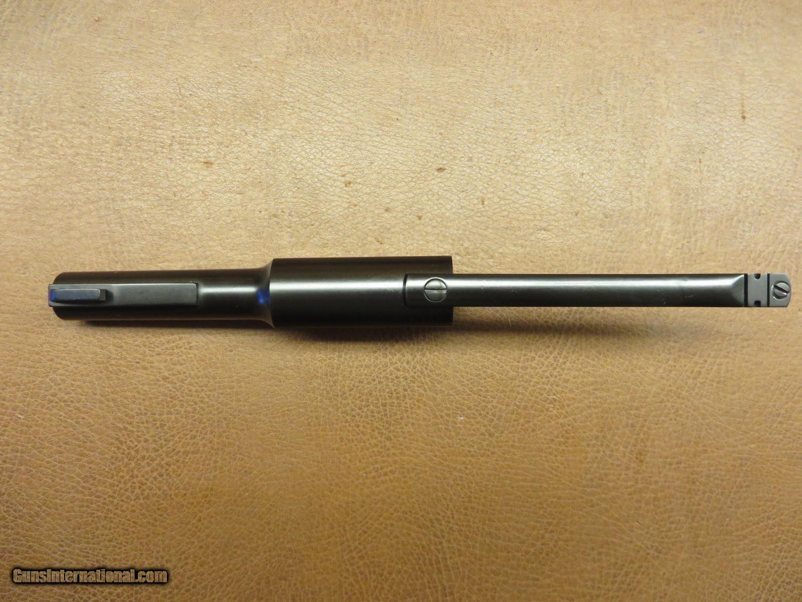 Description: 4 1/2 inch barrel with excellent bore. Comes with barrel guide pin, front sight, and rear sight base only. Newly reblued. Some very minor external pitting visible. SOLD |