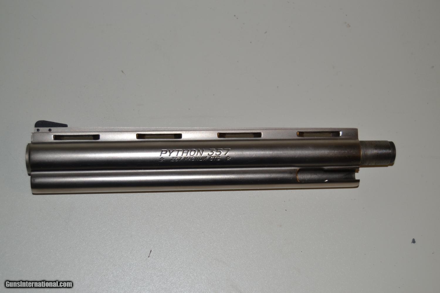 Description: COLT PYTHON BARREL 8 INCH LONG 357 CALIBER STAINLESS STEEL IS IN VERY GOOD CONDITION.. BORE IS BRIGHT AND SHINNEY. HAS VENT RIB AND BLACK FRONT SIGHT. SOLD |