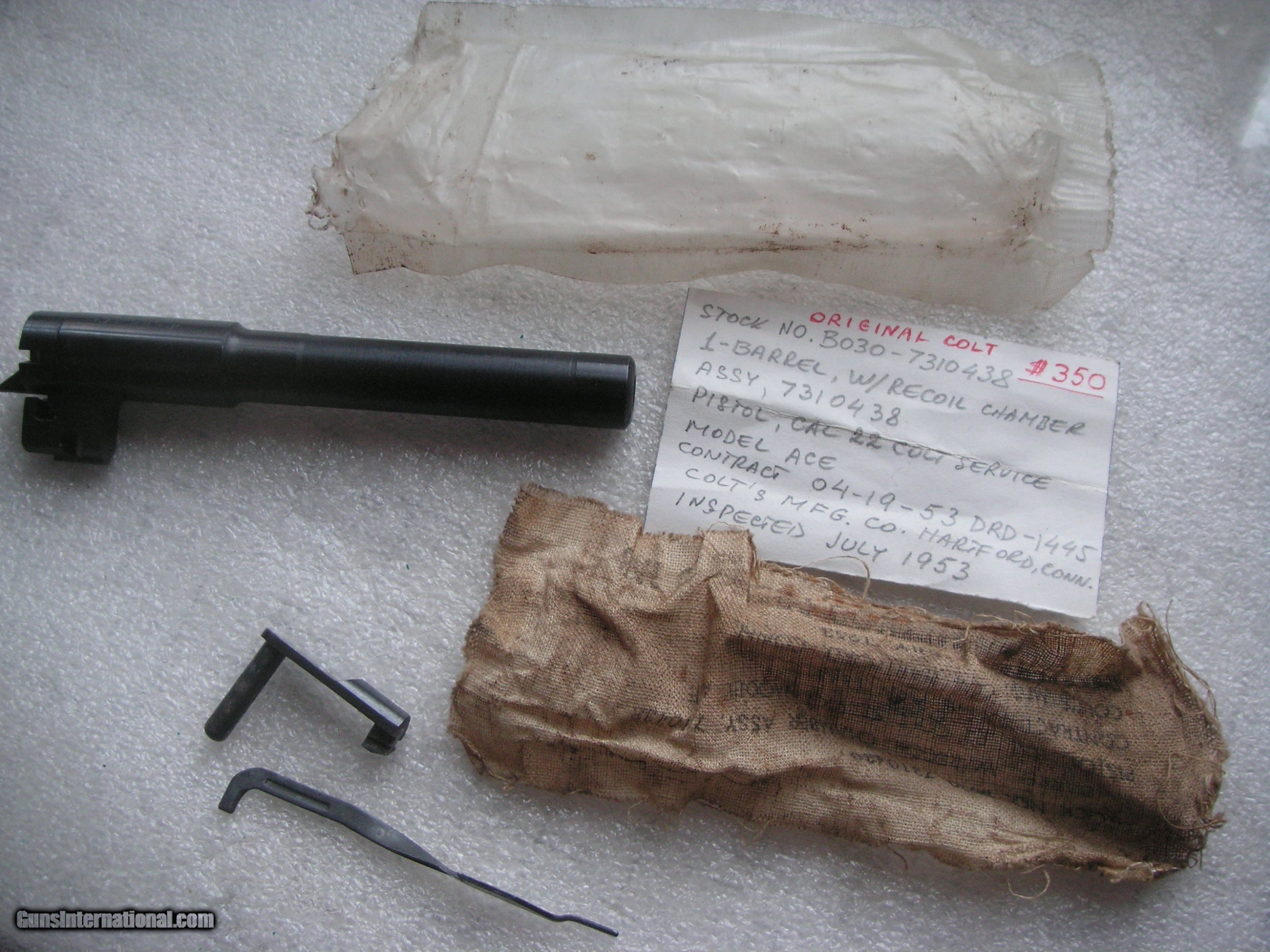 Description: SEE THE PICTURES OF THIS COLT SERVICE MODEL ACE BARREL IN NEW ORIGINAL FACTORY CONDITIONWITH RECOIL CHAMBER. THIS BARREL WAS MADE BY COLT FACTORY FOR A SPARE PARTS, IT WAS WRAPED AND SEALED IN PLASTICK BAG WITH DESCRIPTION OF PRODUCTION DATA DATA: "STOCK # BO30-7310438 1-BARREL, W/RECOIL CHAMBER ASSY, 7310438 PISTOL, CAL.22 COLT SERVICE MODEL ACE CONTRACT 04-19-53 DRD-1445 COLT'S MFG. CO. HARTFORD,CONN. INSPECTED JULY 1953" IN THE WAY TO TAKE THE PICTURES OF IT, I GUT TO PULL IT OUT FROM THE PACKAGE. PRICE FOR IT IS $250 SHIPPED SOLD Handgun Caliber: .22 Long Rifle |
