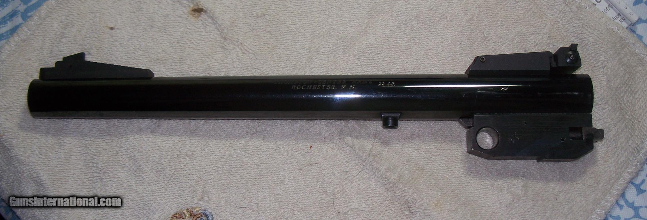 Description: CONTENDER .22 LR bull barrel, blue, adjustable sights, 10" long, 99% mint, perfect bore. Early 1990's era. Shipping to USA is $18. SOLD |