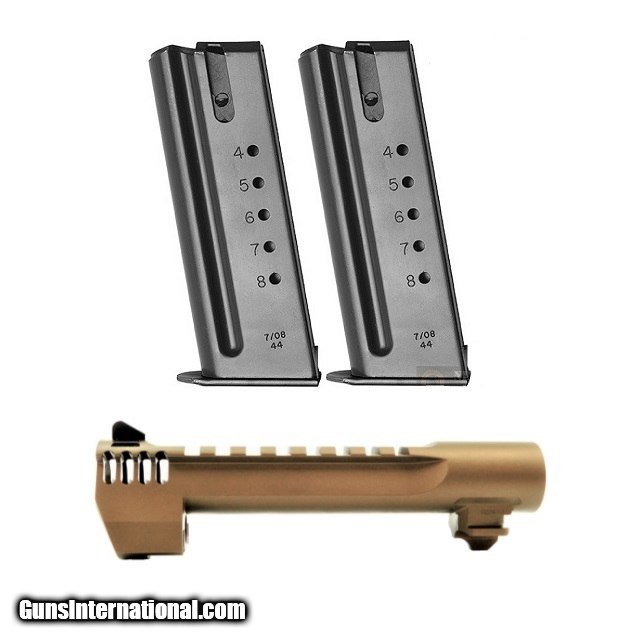 Description: Manufacturer: Magnum Research Item: Desert Eagle Caliber Conversion Kit (.50 AE to .44 Magnum) SKU: BMCP446BBIMB Caliber: .44 Magnum Magazines: (2) 8 Round Barrel Length: 6" w/ Integral Muzzle Brake Picatinny Optics Rail Finish: Burnt Bronze Cerakote Convert your Mark XIX Desert Eagle .50 AE to .44 Magnum with this conversion kit! Conversion kit includes one Desert Eagle .44 Magnum Barrel and (2) 8 round Magazines. This barrel is designed to work in conjunction with Desert Eagle Mark XIX's. It can be used either as a factory replacement part or as a caliber conversion package. Over the past 29 years MRI has been responsible for the design and development of the Desert Eagle pistol. The design was refined and the actual pistols were manufactured by Israel Military Industries (IMI), subsequently shifted to Israeli Weapons Industries (IWI) until 1995, when MRI moved the manufacturing contract to Saco Defense in Saco, Maine. In 1998, MRI moved manufacturing back to IWI. Both Saco and IMI/IWI were strictly contractors: all of the intellectual property, including patents, copyrights and trademarks are the property of Magnum Research. Since 2009 the Desert Eagle Pistol has been produced in the USA at MRI's Pillager, MN facility. SOLD |