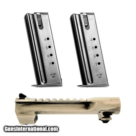 Description: Manufacturer: Magnum Research Item: Desert Eagle Caliber Conversion Kit (.44 MAG to .50 AE) SKU: BMCP506WMD Caliber: .50 AE Magazines: (2) 7 Round Barrel Length: 6" Picatinny Optics Rail Finish: WMD (White Matte Distressed) Cerakote All items are factory new in box unless otherwise stated. Based on the information available to us, the above specifications describe this item to the best of our knowledge. For further information, please contact or visit the manufacturer's . SOLD |