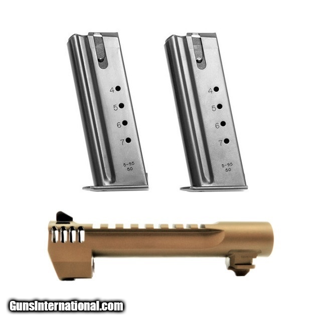 Description: Manufacturer: Magnum Research Item: Desert Eagle Caliber Conversion Kit SKU: BMCP506BBIMB Caliber: .50 AE (Action Express) Magazines: (2) 7 Round Barrel Length: 6" w/ Integral Muzzle Brake Picatinny Optics Rail Finish: Burnt Bronze Cerakote All items are factory new in box unless otherwise stated. Based on the information available to us, the above specifications describe this item to the best of our knowledge. For further information, please contact or visit the manufacturer's . SOLD |