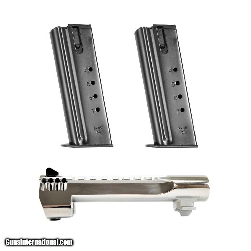 Description: Manufacturer: Magnum Research Item: Desert Eagle Caliber Conversion Kit (.44 MAG to .50 AE) SKU: BMCP506PCIMB Caliber: .50 AE Magazines: (2) 7 Round Barrel Length: 6" w/ Integral Muzzle Brake Picatinny Optics Rail Finish: Polished Chrome All items are factory new in box unless otherwise stated. Based on the information available to us, the above specifications describe this item to the best of our knowledge. For further information, please contact or visit the manufacturer's . SOLD |
