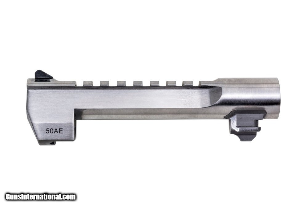 Description: Manufacturer: Magnum Research Item: .50 AE Desert Eagle Barrel SKU: BAR506SR Caliber: .50 AE Barrel Length: 6" Picatinny Optics Rail Finish: Stainless Steel All items are factory new in box unless otherwise stated. Based on the information available to us, the above specifications describe this item to the best of our knowledge. For further information, please contact or visit the manufacturer's . SOLD |