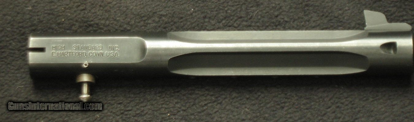 Description: Fluted bull barrel, 7", drilled for weights, perfect bore, excellent blue. With front sight. SOLD |