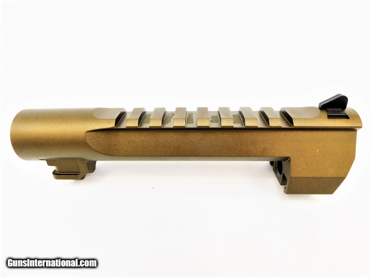 Description: Manufacturer: Magnum Research Item: Magnum Research Desert Eagle Barrel SKU: ZBAR446BB Caliber: .44 Magnum Barrel Length: 6" Picatinny Optics Rail Finish: Burnt Bronze We received these barrels directly from our distributor and are being sold as a factory blem or factory second. There are cosmetic imperfections from the manufacturing or assembly process. Most of these imperfections will be minor. Some of the barrels may have been lightly factory tested fired after production but overall have excellent like new bore conditions. All barrels are closely inspected and notable imperfections are indicated by a red arrow in the pictures if present. Pictures provided above are of the actual barrel you'll be receiving. SOLD |