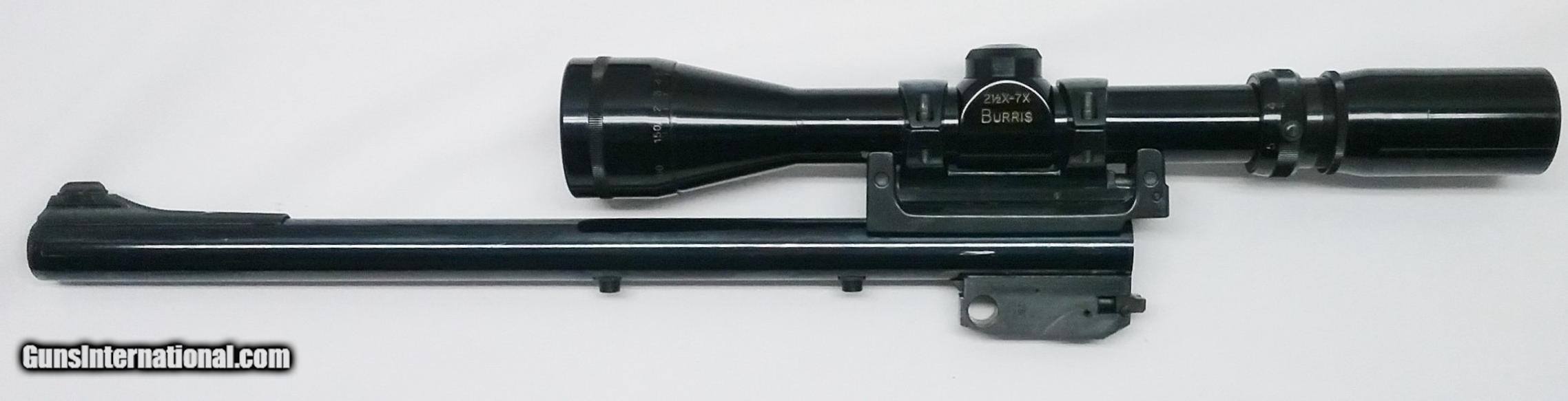 Description: C317 Thompson Center – Contender Super 14 Barrel – .223 - Stk #C317 This Super 14 .223 single shot barrel is for the Thompson Center Contender. The bore is in excellent condition. There is slight wear to the finish where the barrel meets the action and at the muzzle. It has a Burris 2-1/2x-7x scope mounted to the barrel. Overall length is 19”. Weight is 3.5 lbs. Our stock number is # C317. Will ship to anywhere in the United States, buyer pays freight and insurance. SOLD Rifle Caliber: .223 Remington |