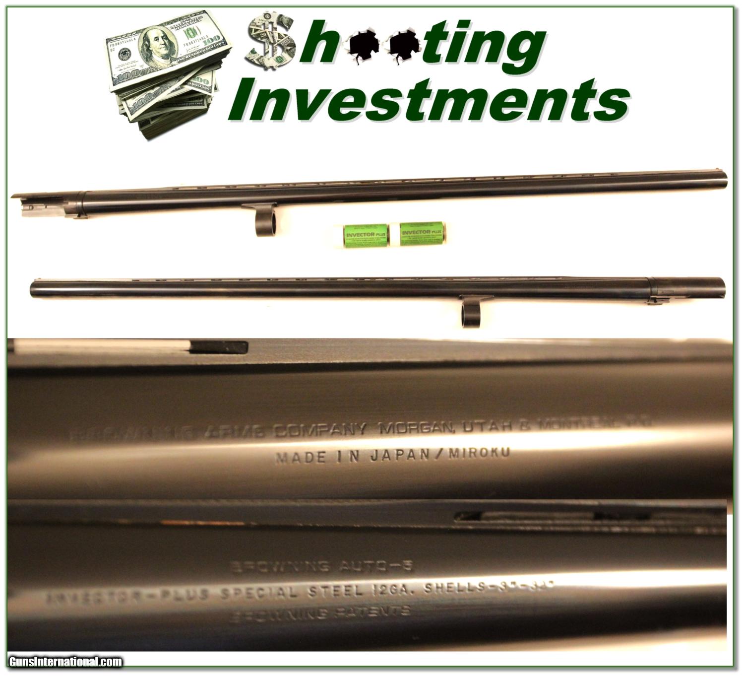 Description: This is an excellent condition reblued Browning A5 barrel. It is a 32in barrel for the Magnum 12 Gauge. It is a vent rib and invector plus and include 3 choke tubes. It will make a nice barrel you can use steel shot in. Shipping is $14.95 and please email me with any questions or larger pictures. (I now consign quality firearms only 10%! Let me know if you have any you would like to sell!) [15-b008] Terms & Conditions Payment: Payment is by Money Order, Cashiers Check or Personal Check. I can now also accept MasterCard and Visa with a 3% convenience fee. PayPal can be used for some items but never firearms. Please let us know if you would like to pay via PayPal. Shipping: The shipping charge will be listed in each description. It is $30 for most guns. Some heavy guns or those insured for over $2000 may be higher. Shipments to Alaska and Hawaii are higher because air shipment is required. Most firearms are shipped within 5 days of receipt of payment. We prefer shipping at the beginning of the week to avoid firearms in transit over weekends. We package all shipments carefully and insure them for the full purchase price, rounded up to the next $100. In the unlikely event that damage occurs, it is important that you save all packaging material for the claims process. Optics are shipped Priority Mail and most other non-firearm shipments are shipped First Class. Returns: Our return policy is simple. If for any reason you are not pleased with your purchase, you may return your item for a refund. The only exception is ammunition, it cannot be returned. It is important to us that you are happy. Guns cannot be fired or dissembled before returning them and must be returned in the same condition as received. Notification of a return must occur with-in 3 days of receipt at your dealer. Shipping, convenience and dealer fees are not refundable and are the responsibility of the buyer. Lay-a-way: If needed, we offer a 60 day lay-a-way option on most firearms. It is 1/3 now, 1/3 in 30 days and 1/3 in 60 days. Lay-a-way firearm sales are final. Consigning your firearms with Shooting Investments: We will help you get top dollar for your firearms. While most local guns shops charge 20% or more, our fee is only 10% with a minimum of $50. At your local gun shop it might take months to sell. Selling on-line provides instant access to thousands of interested buyers. You won’t find any other on-line dealer willing to sell your firearms for only 10% or listing every gun on 4 separate s. Selling through an House typically costs 15% and you have to wait several months to sell and longer to receive funds. If properly priced, we will sell your firearms in a week or two. Send us an email or give us a call and we’ll explain how easy it is for you to get top dollar. Trading: We collect guns and usually just trade for guns we want to add to our collections. We often sell guns for others wanting to purchase one of ours. We find this the most fair to both of us. Our Commission is only 10% and we hold the gun you want until yours sells. Please contact us if you want to sell one of yours to buy one of ours. Help for California Buyers: We are happy to ship to California. It is the buyer’s responsibility to make sure any item you buy is legal in your state. We are also happy to help with your purchase of a firearm from someone other than us. If you see a gun you would like to buy but the seller can’t or won’t ship to California we can help. You buy the gun and have it shipped to us. We’ll then ship it to your California dealer. The cost for this service is only $30 + shipping. Let me know if we can help! SOLD |