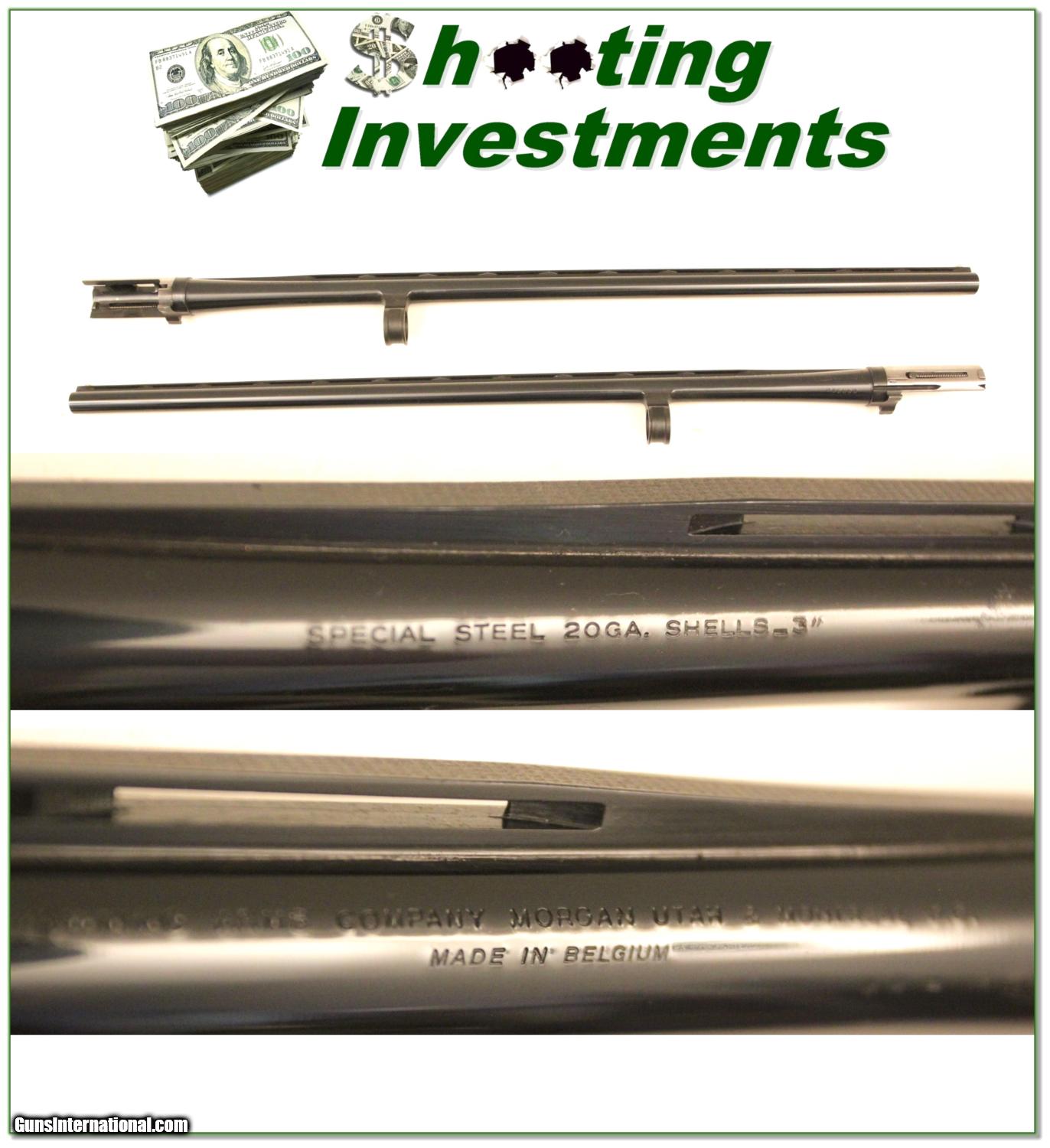 Description: This is a like new barrel. It is a Belgium made for the Browning A5 Magnum 20 Gauge. It is 26 in Vent Rib and IC. It has the Morgan Utah and Montreal address. Shipping is $14.95. Please email me with any questions or larger pictures. Please email me with any questions or larger pictures. (I now consign quality firearms only 10%! Let me know if you have any you would like to sell!) [15-0693b] Terms & Conditions Payment: Payment is by Money Order, Cashiers Check or Personal Check. I can now also accept MasterCard and Visa with a 3% convenience fee. PayPal can be used for some items but never firearms. Please let us know if you would like to pay via PayPal. Shipping: The shipping charge will be listed in each description. It is $30 for most guns. Some heavy guns or those insured for over $2000 may be higher. Shipments to Alaska and Hawaii are higher because air shipment is required. Most firearms are shipped within 5 days of receipt of payment. We prefer shipping at the beginning of the week to avoid firearms in transit over weekends. We package all shipments carefully and insure them for the full purchase price, rounded up to the next $100. In the unlikely event that damage occurs, it is important that you save all packaging material for the claims process. Optics are shipped Priority Mail and most other non-firearm shipments are shipped First Class. Returns: Our return policy is simple. If for any reason you are not pleased with your purchase, you may return your item for a refund. The only exception is ammunition, it cannot be returned. It is important to us that you are happy. Guns cannot be fired or dissembled before returning them and must be returned in the same condition as received. Notification of a return must occur with-in 3 days of receipt at your dealer. Shipping, convenience and dealer fees are not refundable and are the responsibility of the buyer. Lay-a-way: If needed, we offer a 60 day lay-a-way option on most firearms. It is 1/3 now, 1/3 in 30 days and 1/3 in 60 days. Lay-a-way firearm sales are final. Consigning your firearms with Shooting Investments: We will help you get top dollar for your firearms. While most local guns shops charge 20% or more, our fee is only 10% with a minimum of $50. At your local gun shop it might take months to sell. Selling on-line provides instant access to thousands of interested buyers. You won’t find any other on-line dealer willing to sell your firearms for only 10% or listing every gun on 4 separate s. Selling through an House typically costs 15% and you have to wait several months to sell and longer to receive funds. If properly priced, we will sell your firearms in a week or two. Send us an email or give us a call and we’ll explain how easy it is for you to get top dollar. Trading: We collect guns and usually just trade for guns we want to add to our collections. We often sell guns for others wanting to purchase one of ours. We find this the most fair to both of us. Our Commission is only 10% and we hold the gun you want until yours sells. Please contact us if you want to sell one of yours to buy one of ours. Help for California Buyers: We are happy to ship to California. It is the buyer’s responsibility to make sure any item you buy is legal in your state. We are also happy to help with your purchase of a firearm from someone other than us. If you see a gun you would like to buy but the seller can’t or won’t ship to California we can help. You buy the gun and have it shipped to us. We’ll then ship it to your California dealer. The cost for this service is only $30 + shipping. Let me know if we can help! SOLD |
